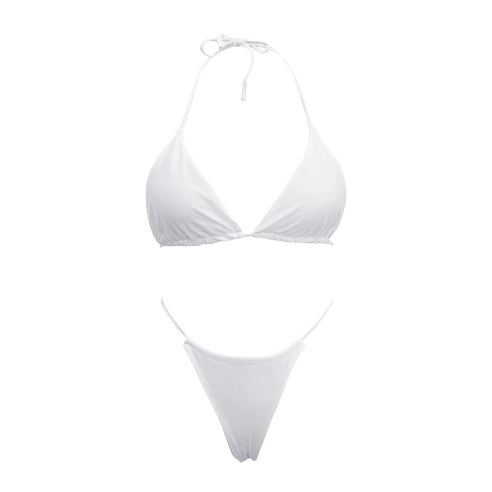 Минималистичный однотонный черный белый микро-танга Biniki купальный костюм женский сексуальный простой на шнуровке с лямкой на шее Женская пляжная одежда купальный костюм