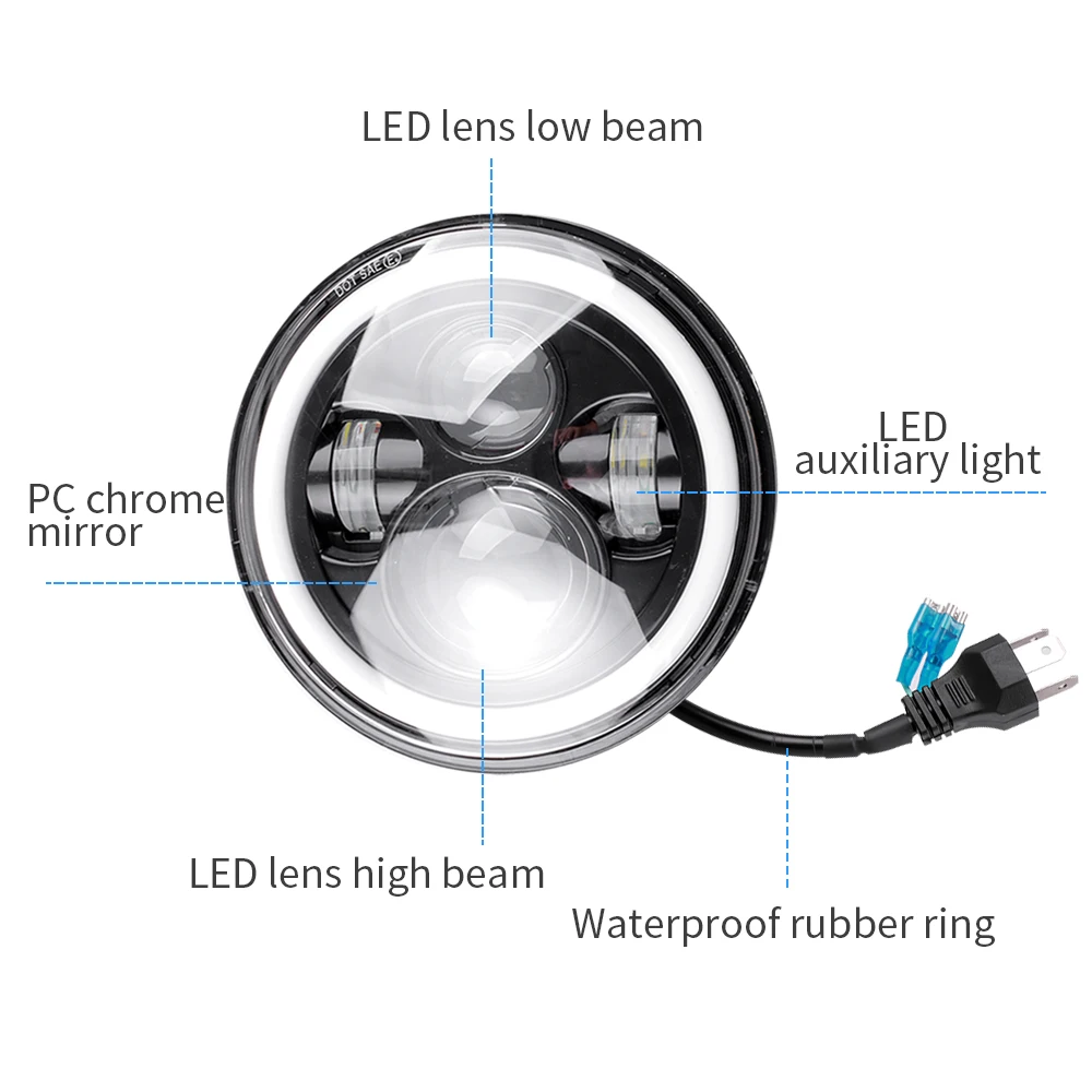 2 шт. 7-дюймовые светодиодные фары с кольцевым галогенным сигналом ...