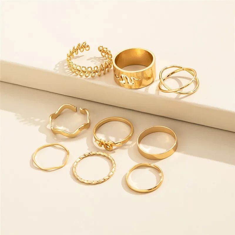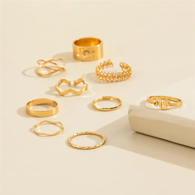 Набор женских колец TOBILO в богемном стиле, винтажное Ювелирное Украшение под золото с геометрическим узором в виде змеи, в стиле бохо