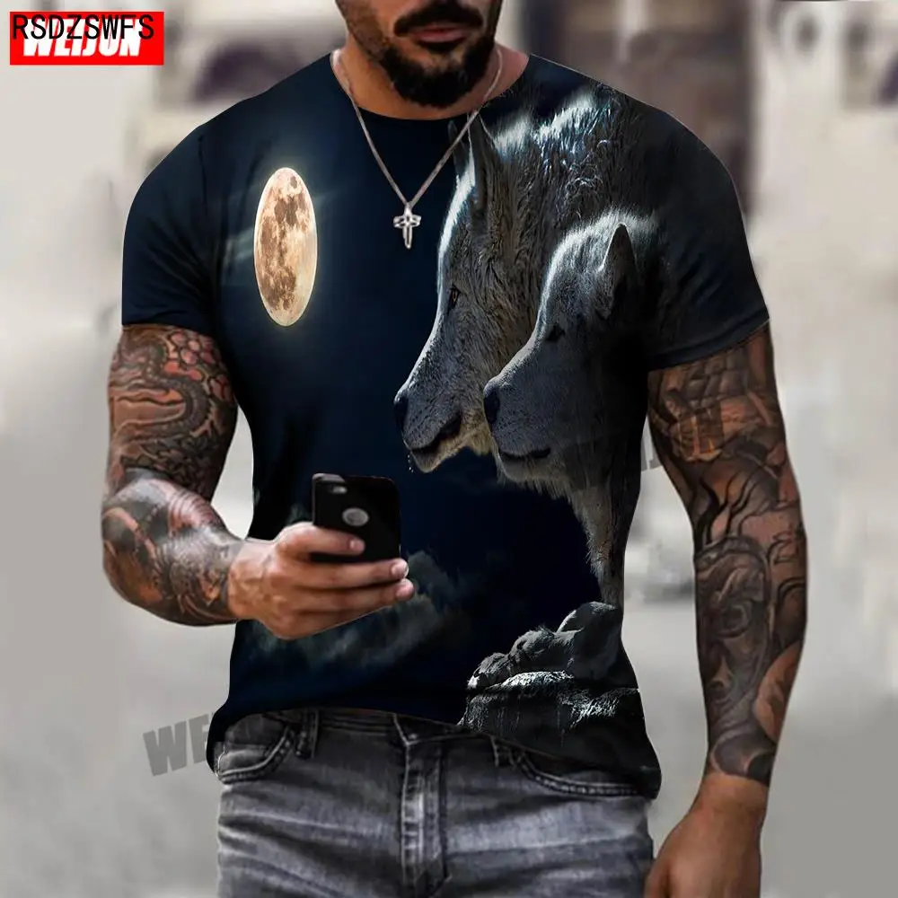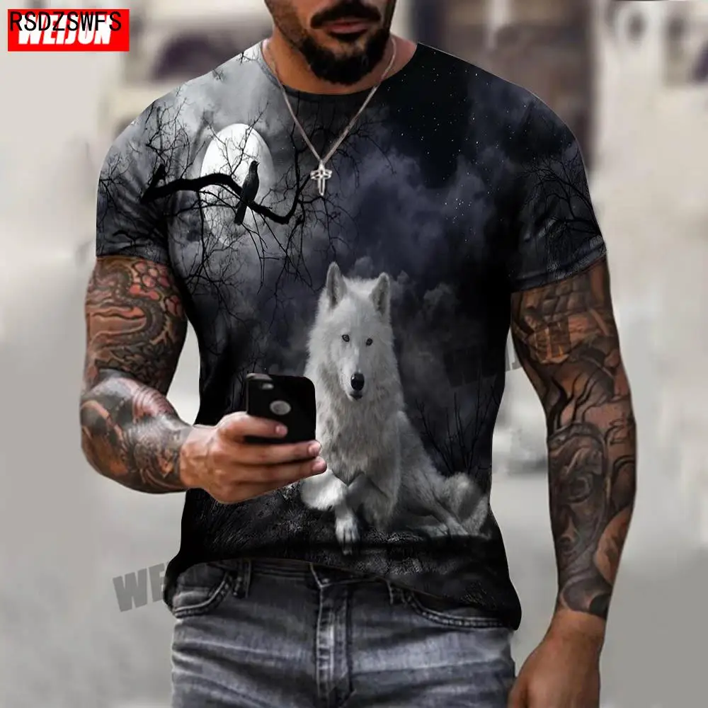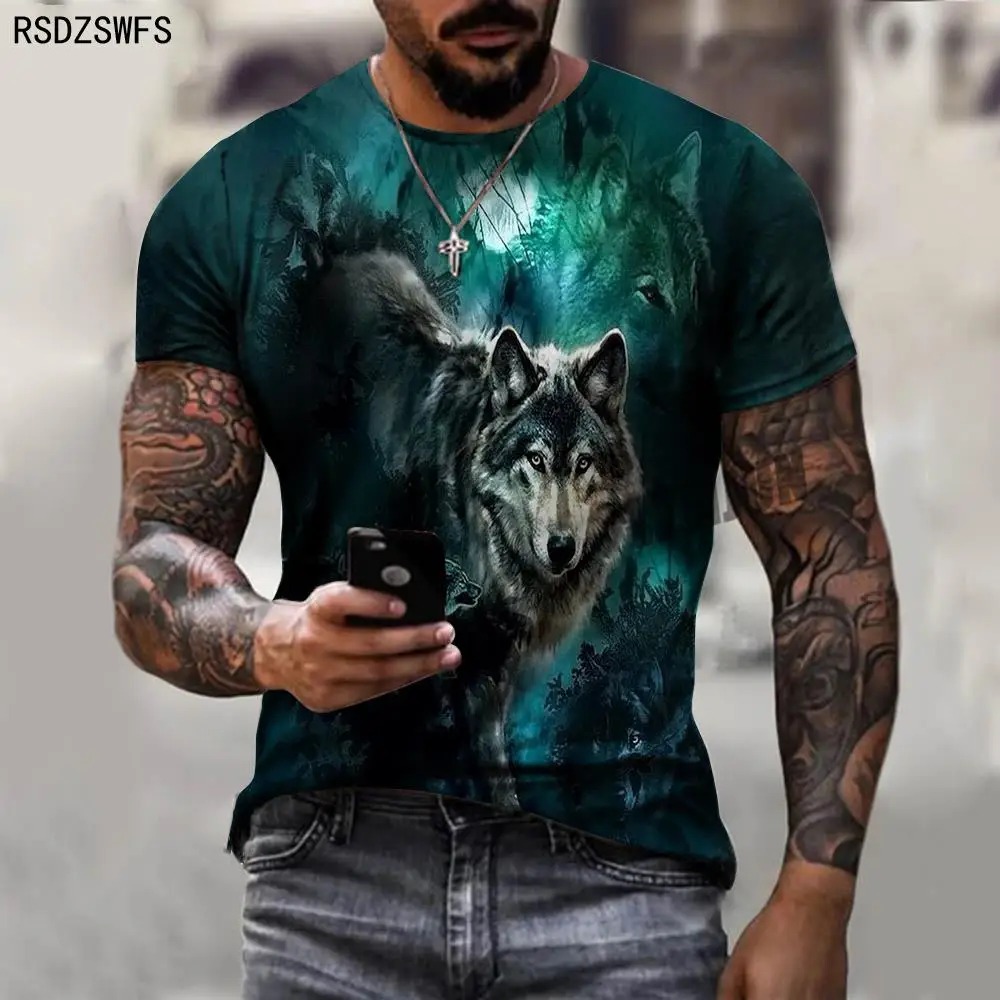 Крутая Летняя мужская футболка с 3D принтом, новинка 2021, Мужская Спортивная повседневная футболка с круглым вырезом и коротким рукавом с изображением волка, одежда с