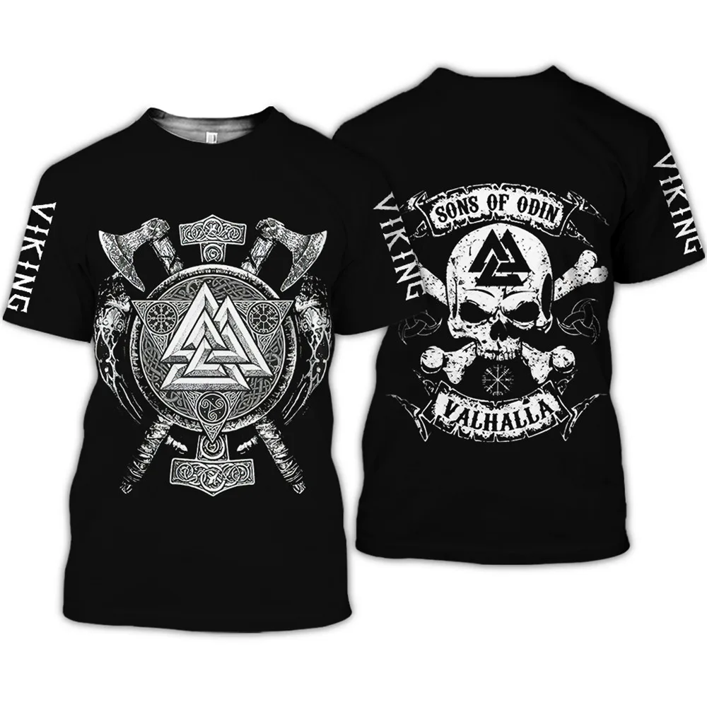Футболка мужская с 3d-логотипом викингов, модная повседневная Уличн...