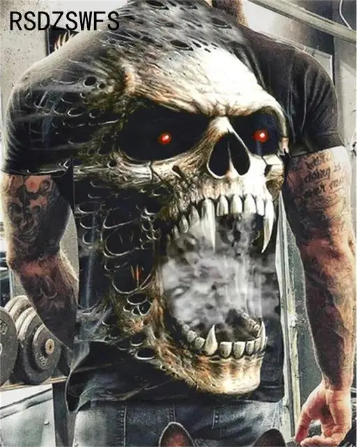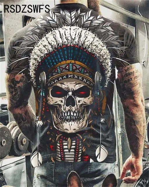 Футболка мужская оверсайз с коротким рукавом, Повседневная рубашка с принтом черепа, уличная одежда в стиле хип-хоп, топ с 3D принтом, лето 2021