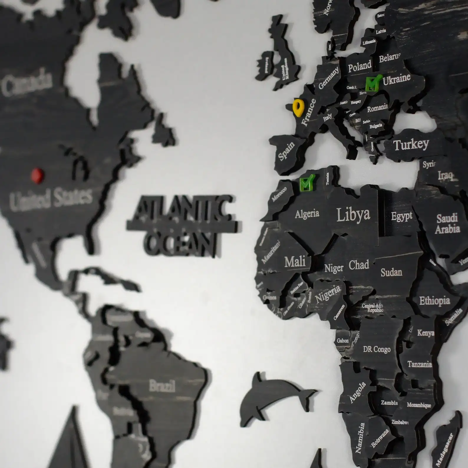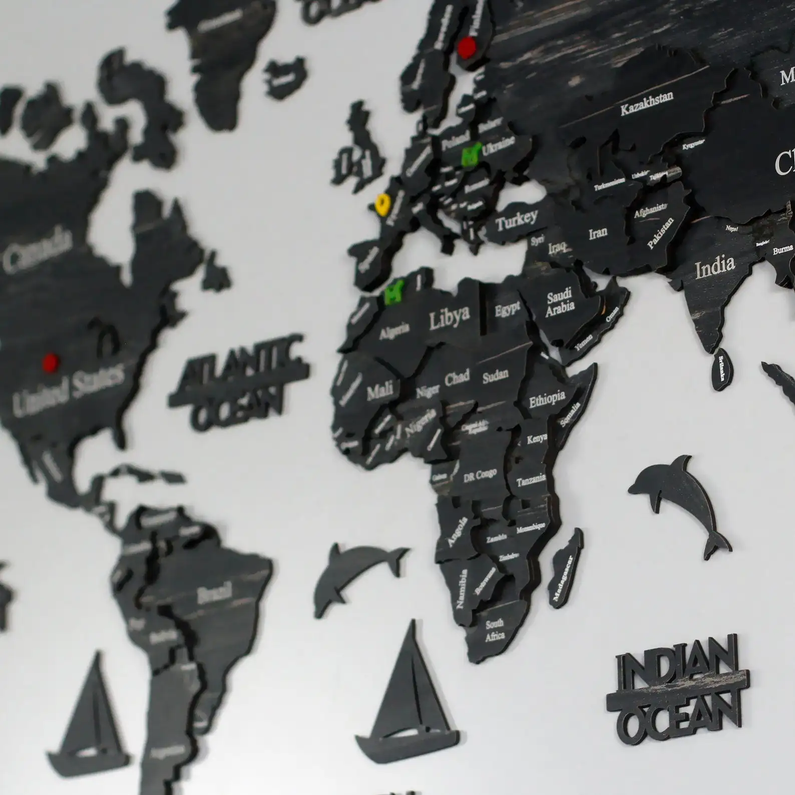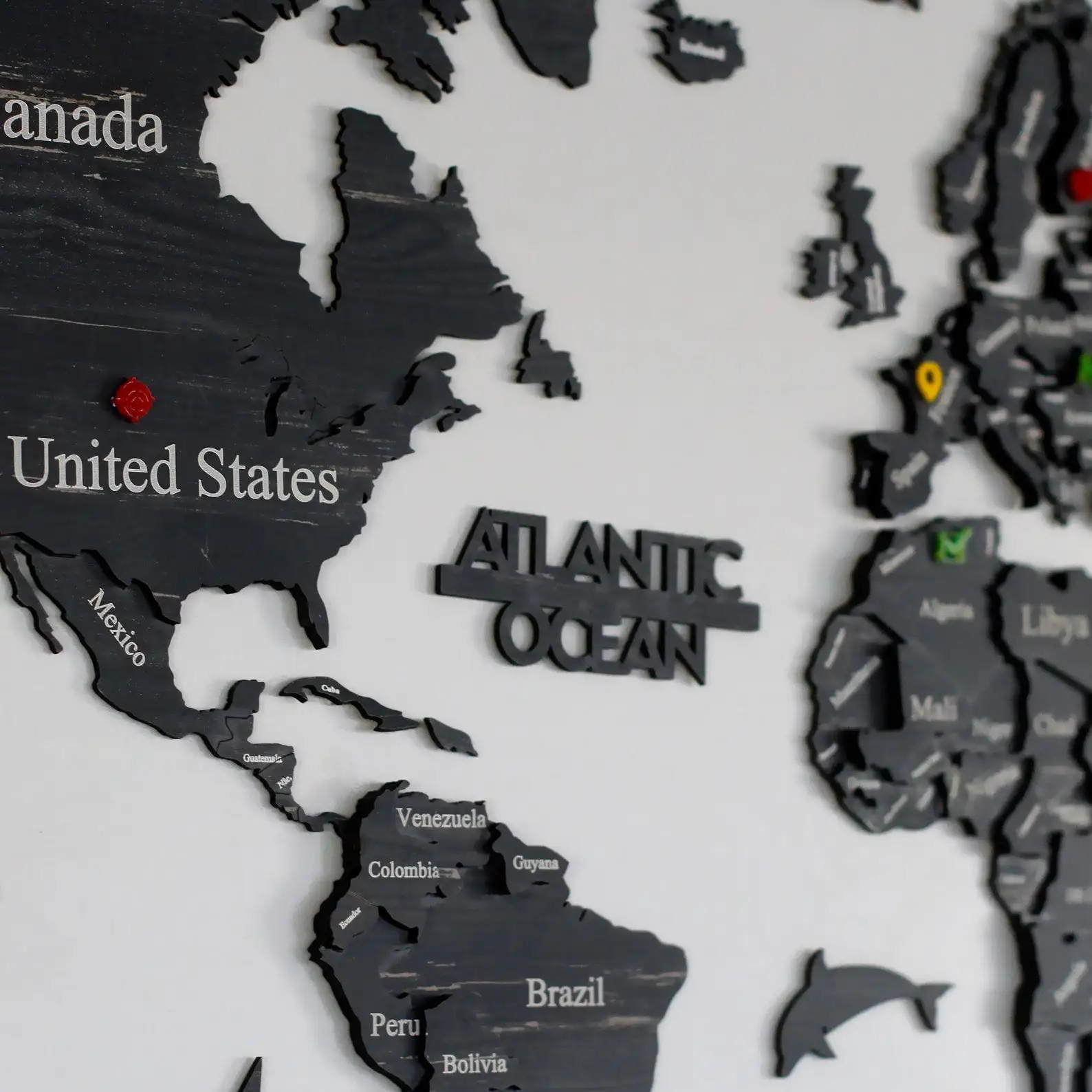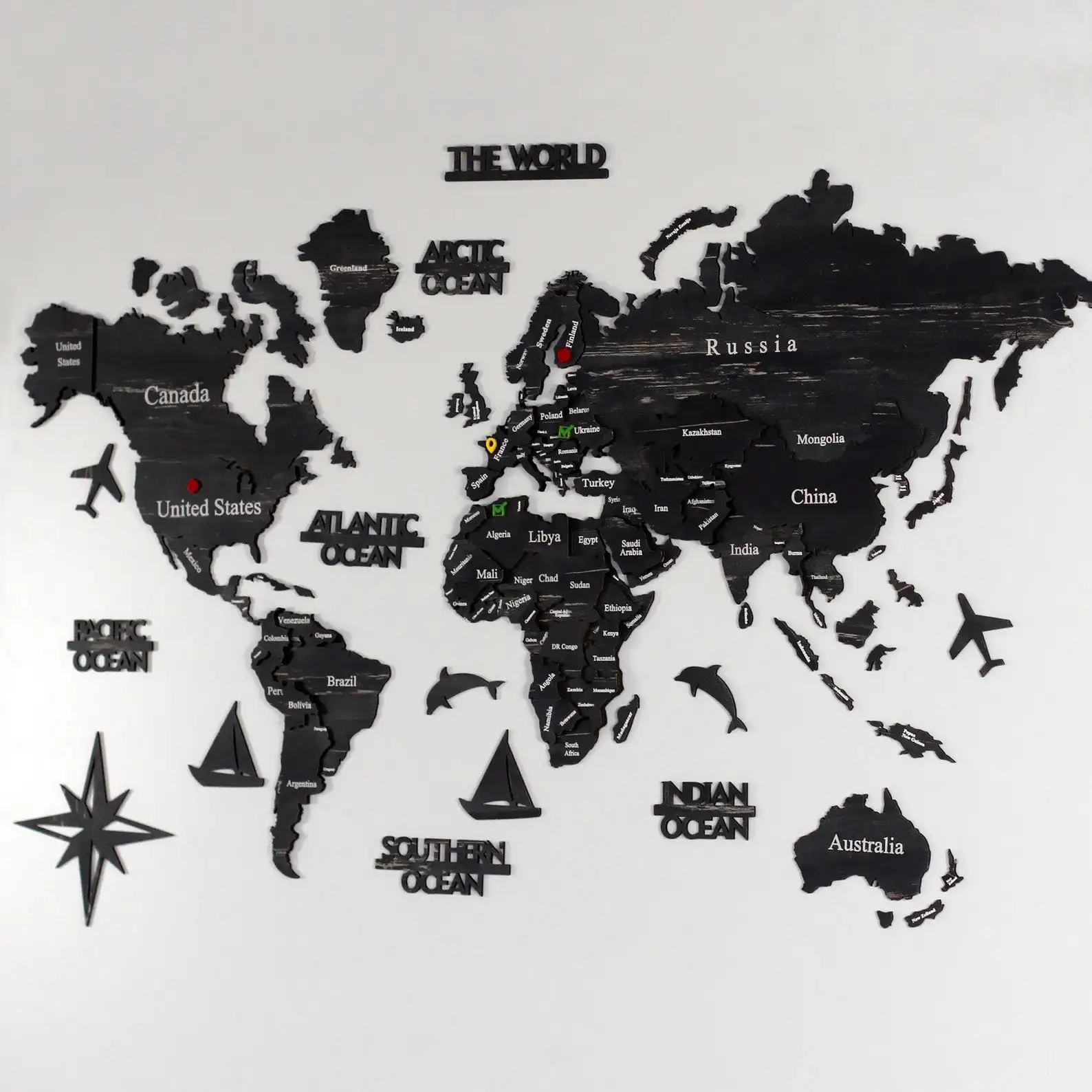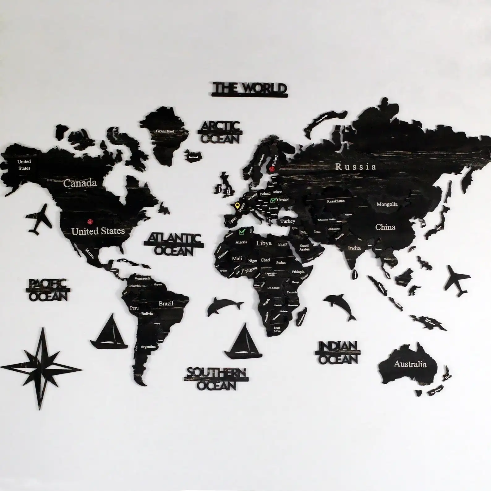 Декоративная 3D Деревянная Карта мира, Туана, Европа, Азия, континент, офис, гостиная, Настенный декор, домашний подарок, искусство, натуральные булавки для школы