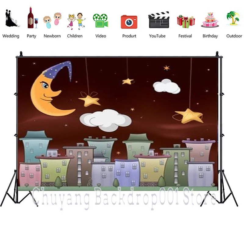 Реквизит для фотостудии фон для фотосъемки ночной город мультфильм Виниловый фон дети мультфильм день рождения украшение