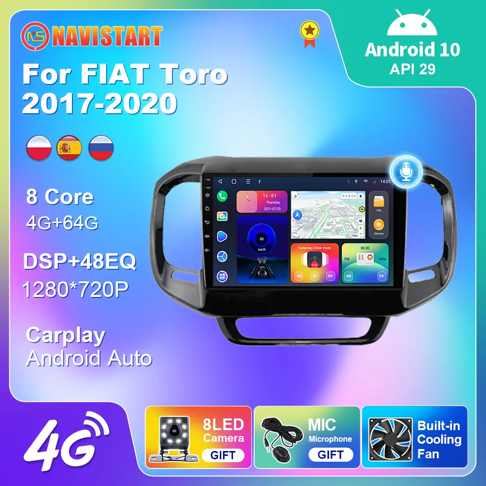 Автомагнитола на Android 10 для FIAT Toro 2017-2021, 2 Din, Авторадио, мультимедийная навигация, Автомагнитола для Carplay, DSP, GPS-навигация, без DVD-плеера