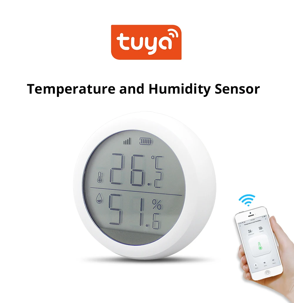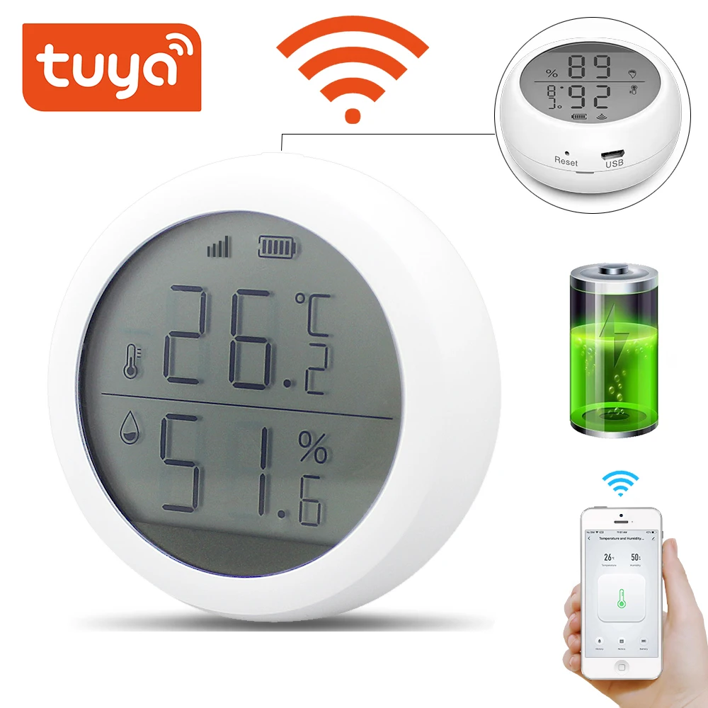 Датчик температуры и влажности Tuya для умного дома со светодиодным экраном, работает с Google Assistant и Wi-Fi Hub