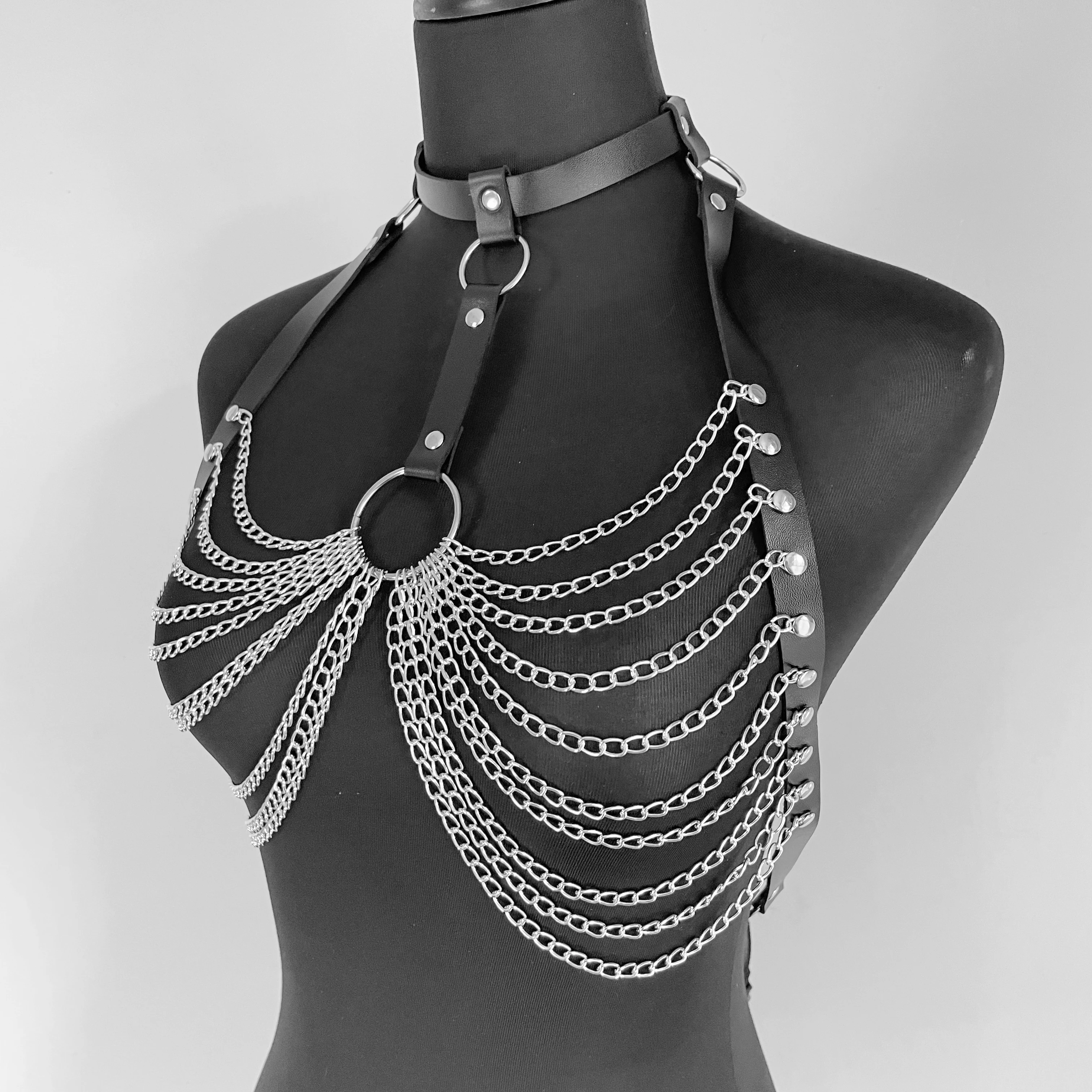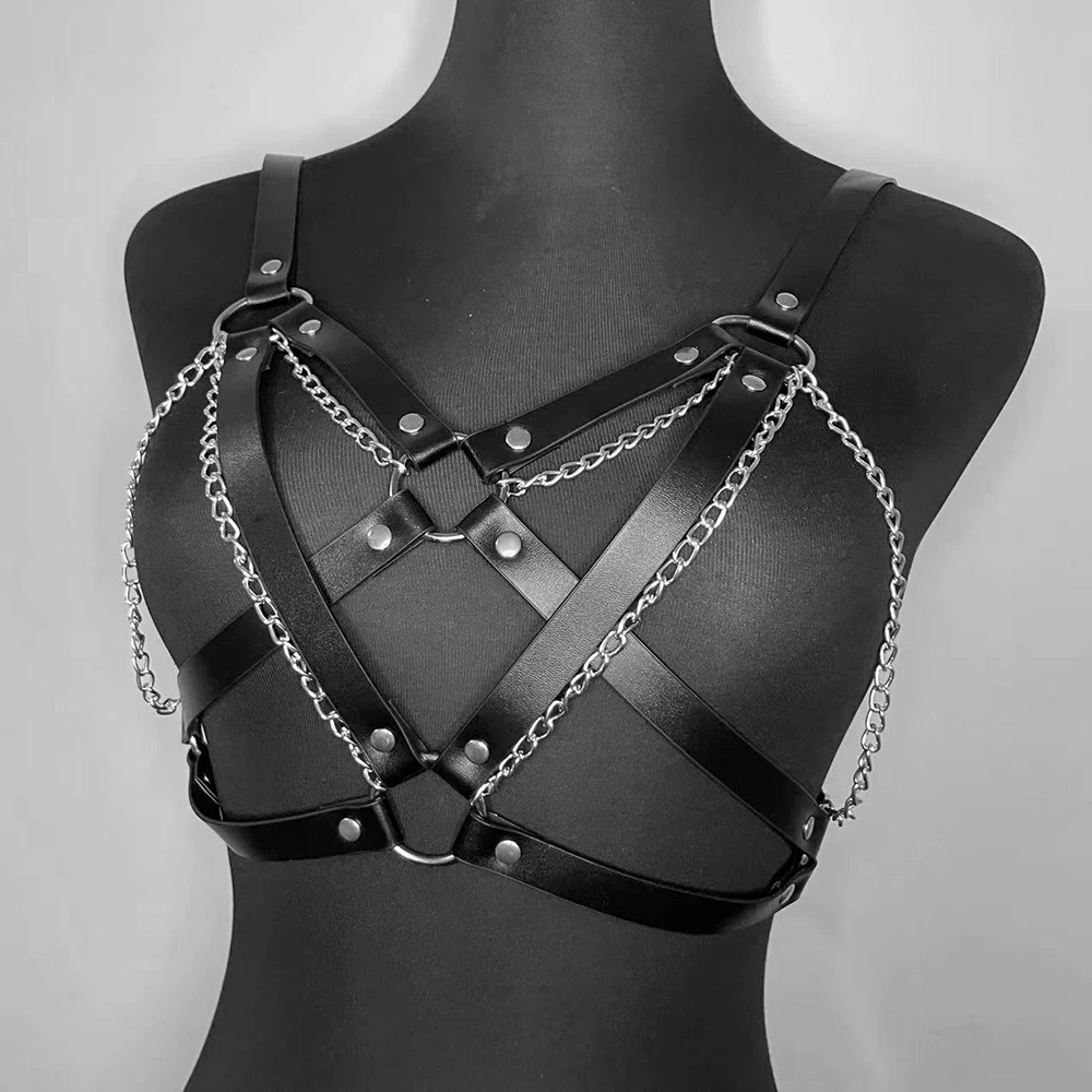 Женское бондажное белье, укороченные топы в готическом стиле, кожаный бюстгальтер, клетка, БДСМ, ошейник, пояс, цепочка, рабыня, секс-игрушки, чулок, пояс