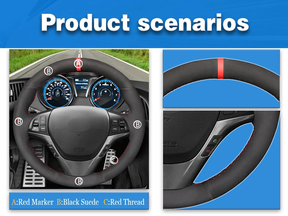 Черная замша с ручной строчкой для Hyundai Genesis Coupe 2009-2016 Rohens Coupe 2009