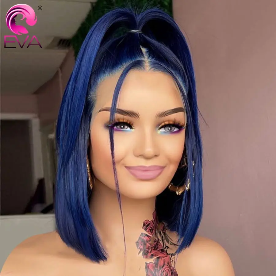 Парик из ЭВА с голубым Бобом на сетке спереди, короткие прямые парики из человеческих волос на сетке спереди 13x6, парик из натуральных волос на сетке спереди