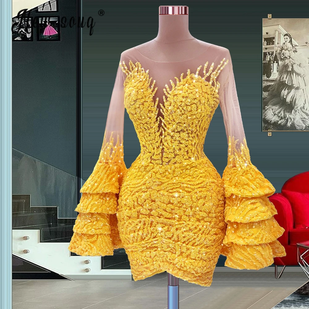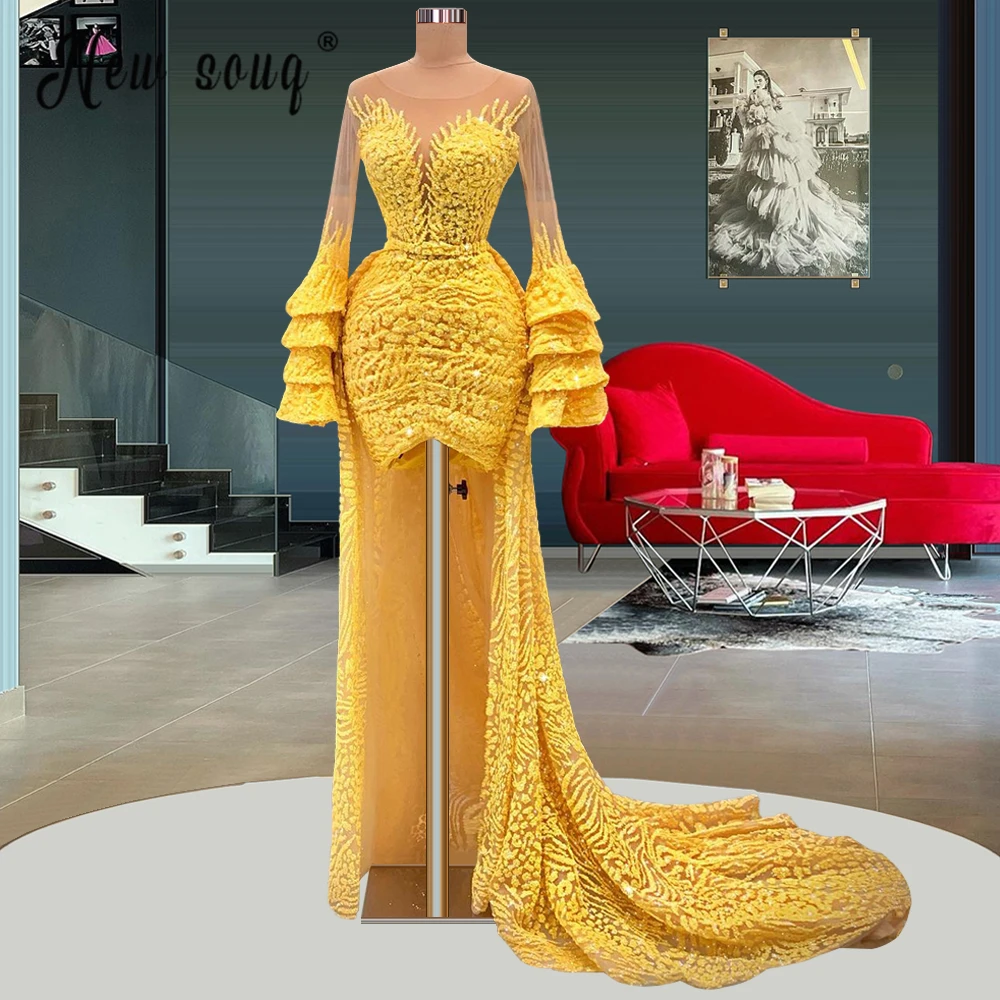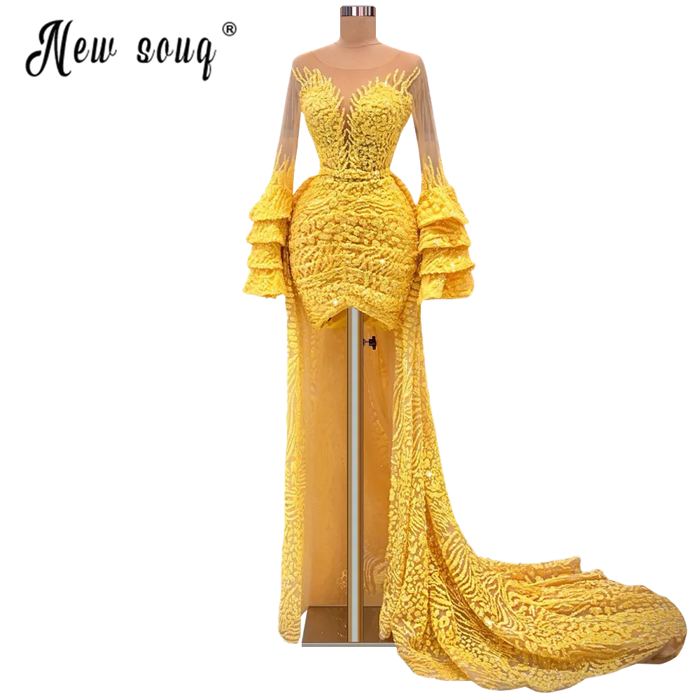 Элегантные желтые женские платья для выпускного вечера с бисером, в...