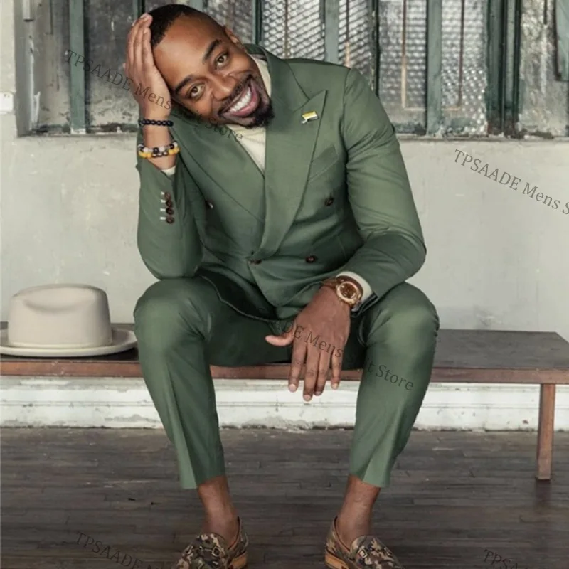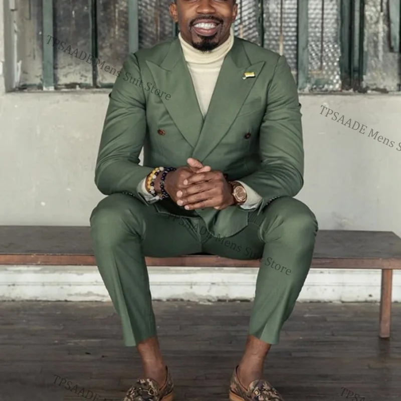 Мужской костюм TPSAADE из 2 предметов, зеленый двубортный деловой костюм, приталенный силуэт, пиджак и брюки на заказ, для свадьбы, выпусквечерние вечера