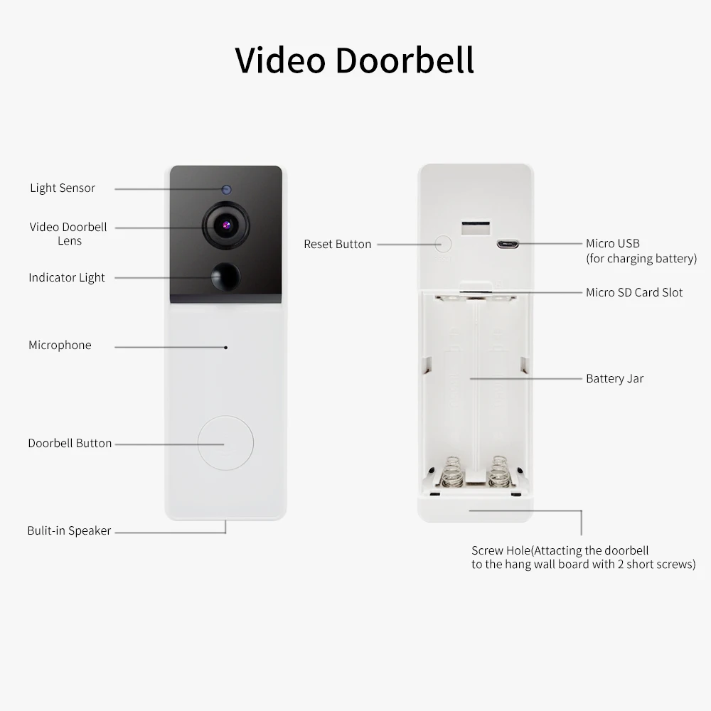 Умный дверной звонок с разрешением 1080P HD, Wi-Fi, ночным видением