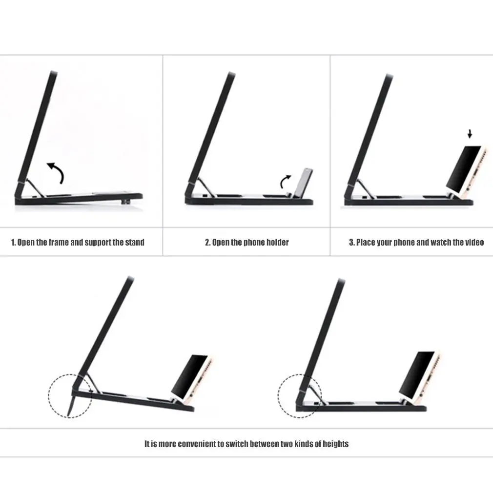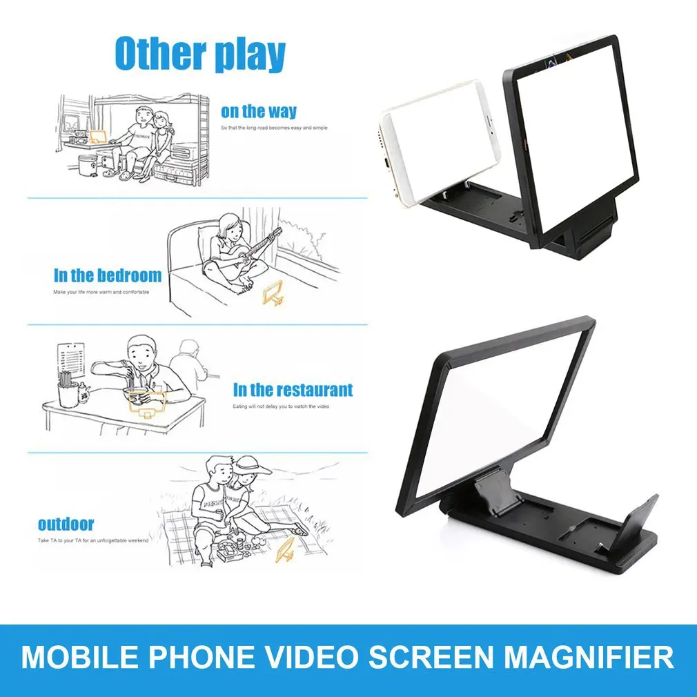 Особенности:1. Изготовлен из высококачественного материала, безопасный и прочный в использовании.2. Увеличьте экран мобильного телефона в 2-3 раза.3. Маленький размер и портативный, легко носить с собой.4. Дизайн держателя стойки, освободите руку, не нужно держать ваш мобильный телефон во время просмотра видео.