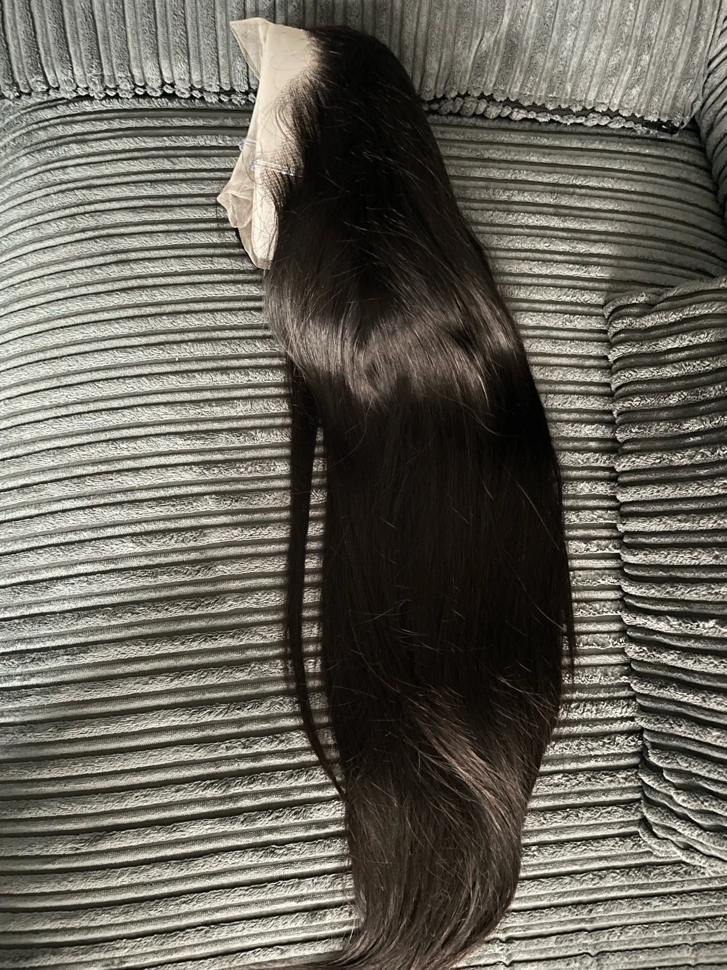 Я так люблю прямые волосы. Оно соответствует длине, очень мягкое и Шелковистое, не пахнет, а кружево прозрачное, легко тает и заполнено от корней до кончиков. Текстура идеальна. Волосы высокого качества, точно как в описании.