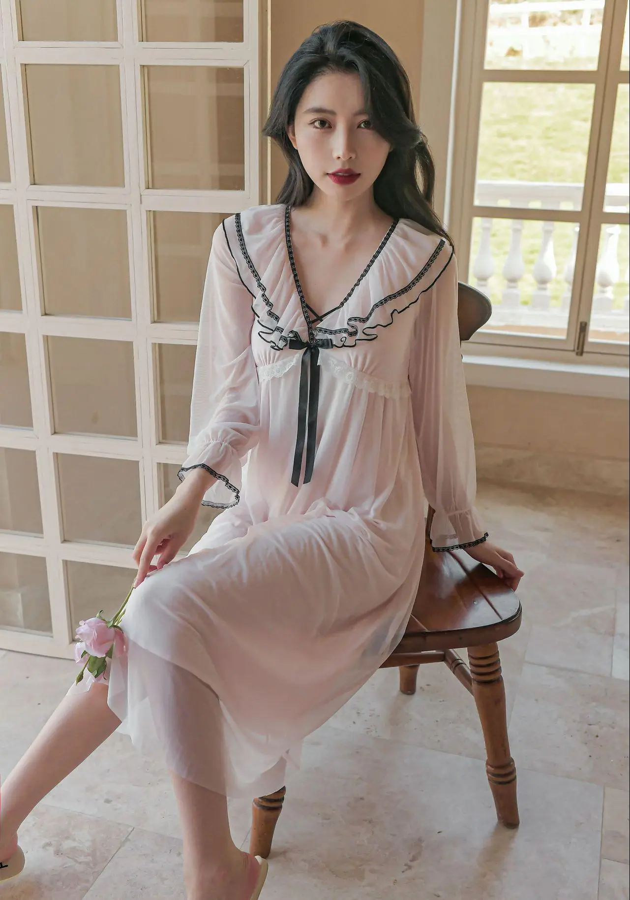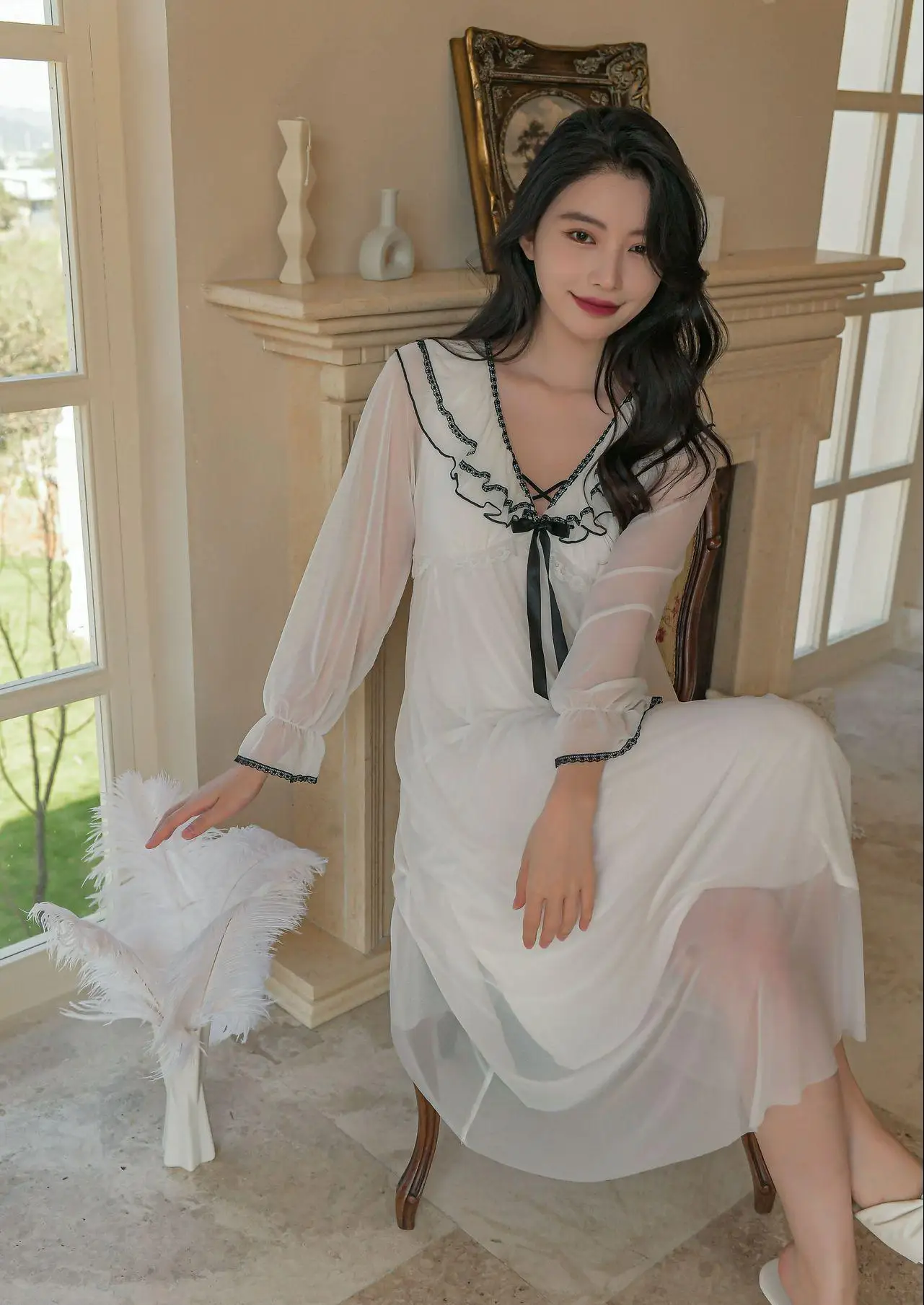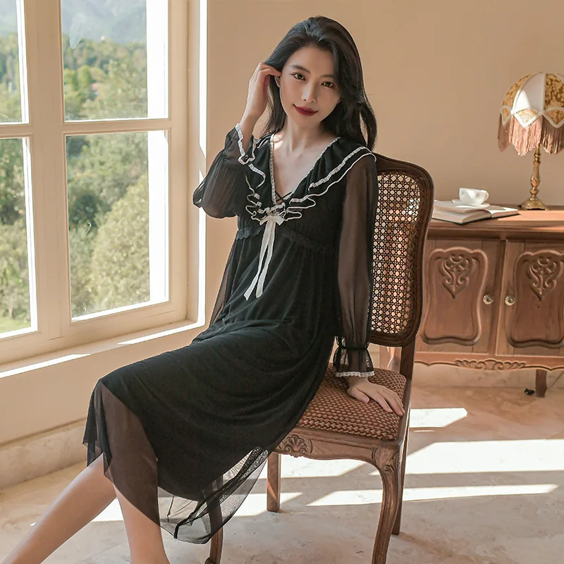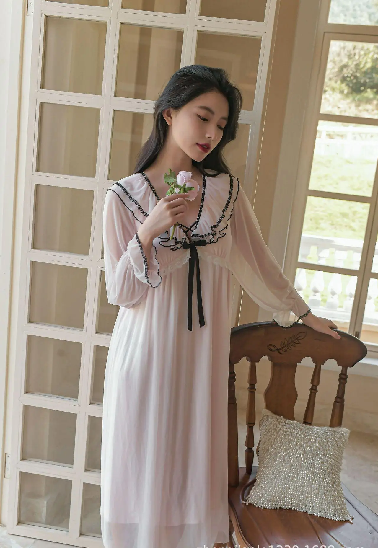 Сетчатая Элегантная пижама, сексуальная ночная рубашка из модала, интимное белье с нагрудными подушечками, летняя кружевная ночная сорочка, Женская домашняя одежда