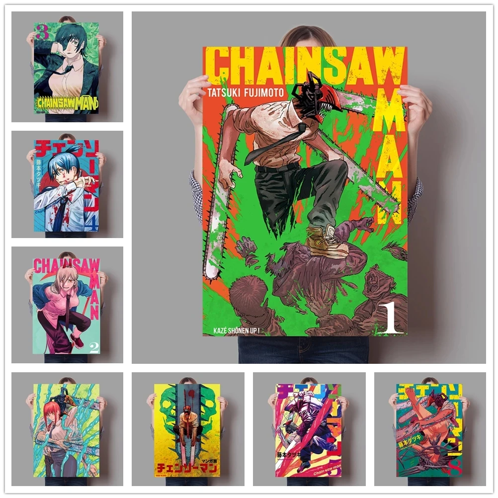 Постеры с изображением человека и бензопилы, горячее аниме художест...