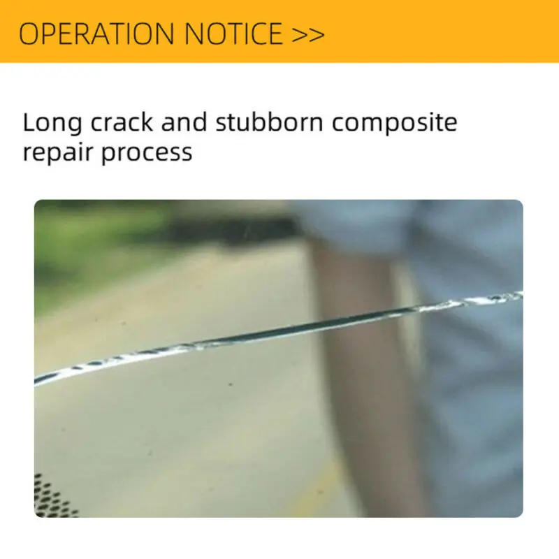 1. Пожалуйста, припаркуйте свой автомобиль в помещении, чтобы избежать ультрафиолетовых солнечных лучей, которые могут высушить жидкость для ремонта заранее и привести к сбою в ремонте.2. Убедитесь, что вы очистили трещину, чтобы предотвратить попадание влаги и пыли внутрь, чехол для ремонта.3. Кульлет необходимо очистить для четкого доступа к жидкости для ремонта, что позволяет жидкости глубоко проникать в трещину.4. Только начинайте отверждение, когда ремонтная жидкость полностью проникает под высоким давлением, учитывая, что отверждение необратимо.