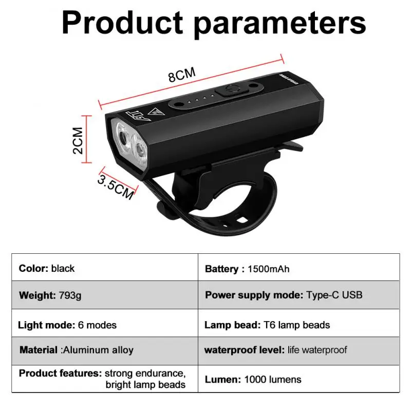 ✔Водонепроницаемый, не замачивайте велосипедный светильник в воде.