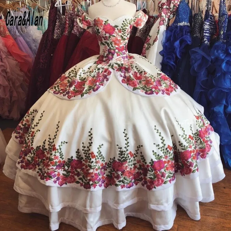 Белое платье с цветочной аппликацией, открытыми плечами, 16 лет