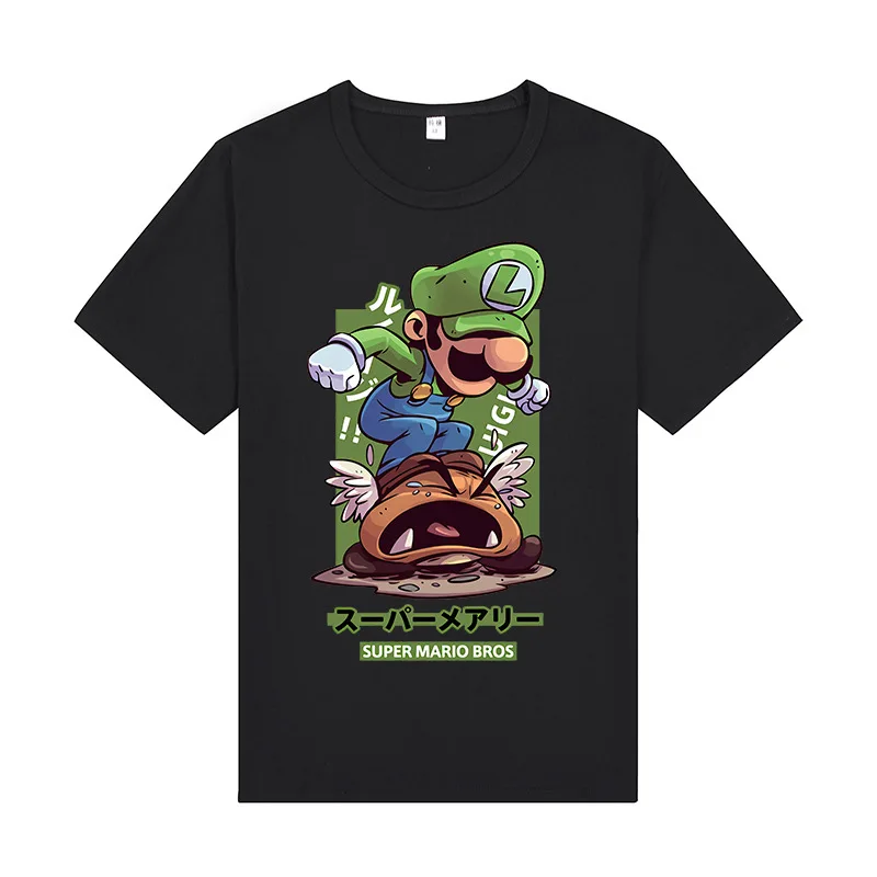 Футболка мужская в стиле Super Mario Bros, свободная рубашка в стиле хип-хоп с короткими рукавами и мультипликационным принтом Луиджи, модная одежда в стиле Харадзюку, на лето