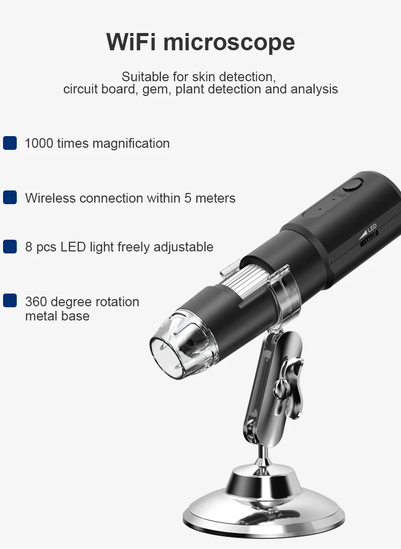 Цифровой микроскоп 2 МП 1080P 50-1000X WIFI беспроводной ручной эндоскоп для ремонта волос кожи смартфона