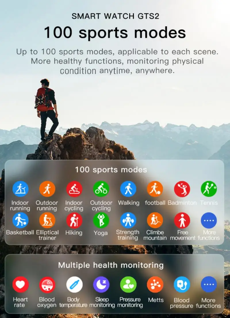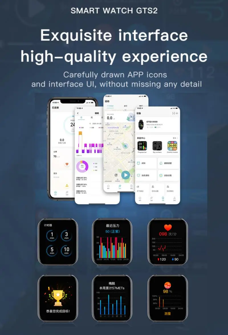 Новинка 2022, умные часы GTS 2, музыкальный проигрыватель, функция приемасовершения звонков, пульсометр, длительный срок службы батареи, умные часы для телефонов Android и IOS
