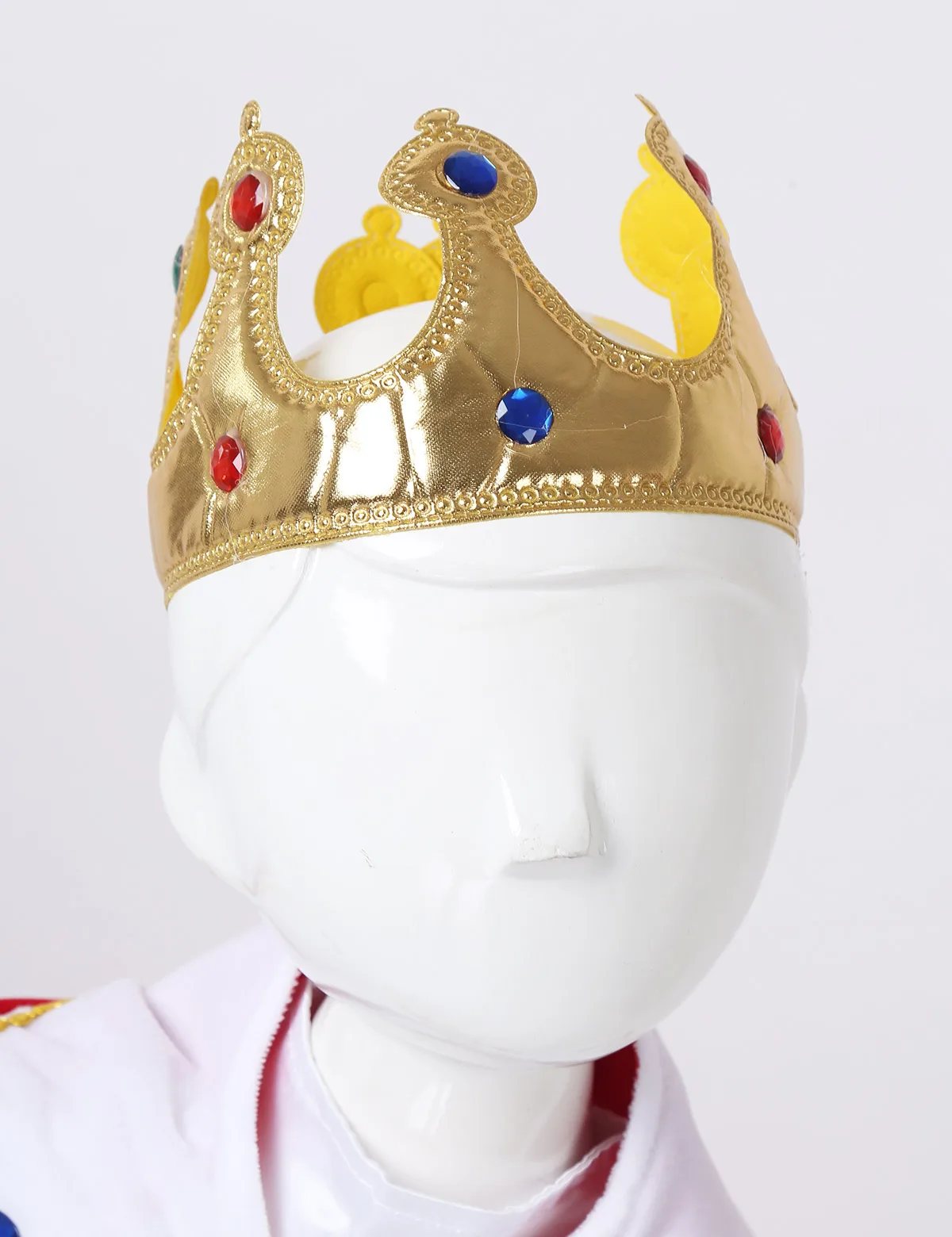 Особенности: Костюм изготовлен из полиэстера, ручная стирка, машинная стирка. Таблица размеров означает возраст для мальчиков, но только для общего руководства. Топы с длинными рукавами; Вырез-лодочка с застежкой на пуговицы сзади. Лиф украшен блестящими драгоценными камнями и золотыми оплетками. Сочетание золотого куммербуна. Брюки с эластичной резинкой на талии и отверстиями для ног. Красная бархатная накидка с завязками на поясе. Поставляется с короной, дубинкой и парой носков. Подходит для Хэллоуина, карнавала, косплея, вечерние темы, ролевых игр, нарядов, фотографий, праздников и т. д.