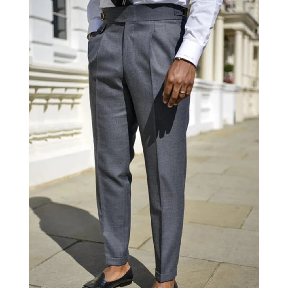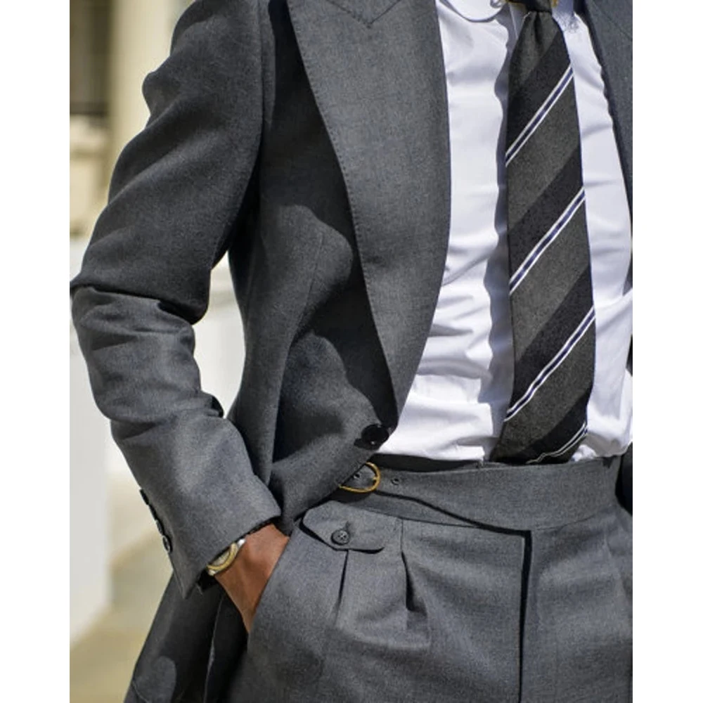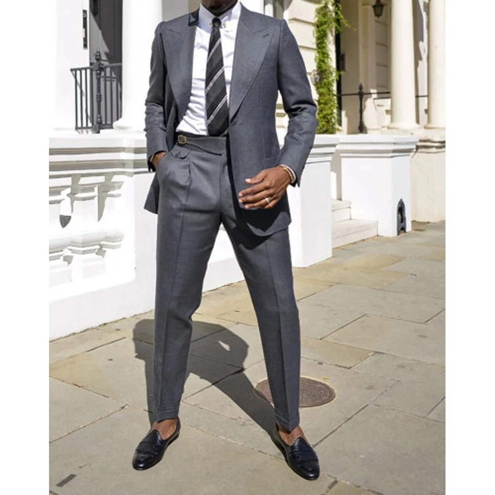 Мужские костюмы из 2 предметов серого цвета, современный официальный свадебный смокинг с высокой талией, брюки с отворотом вечерние Одежда для вечеринки жениха, двубортный пиджак, 2022