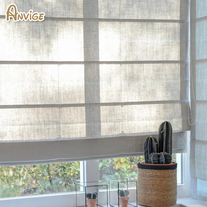 Современные льняные прозрачные римские шторы Anvige серого цвета дл...
