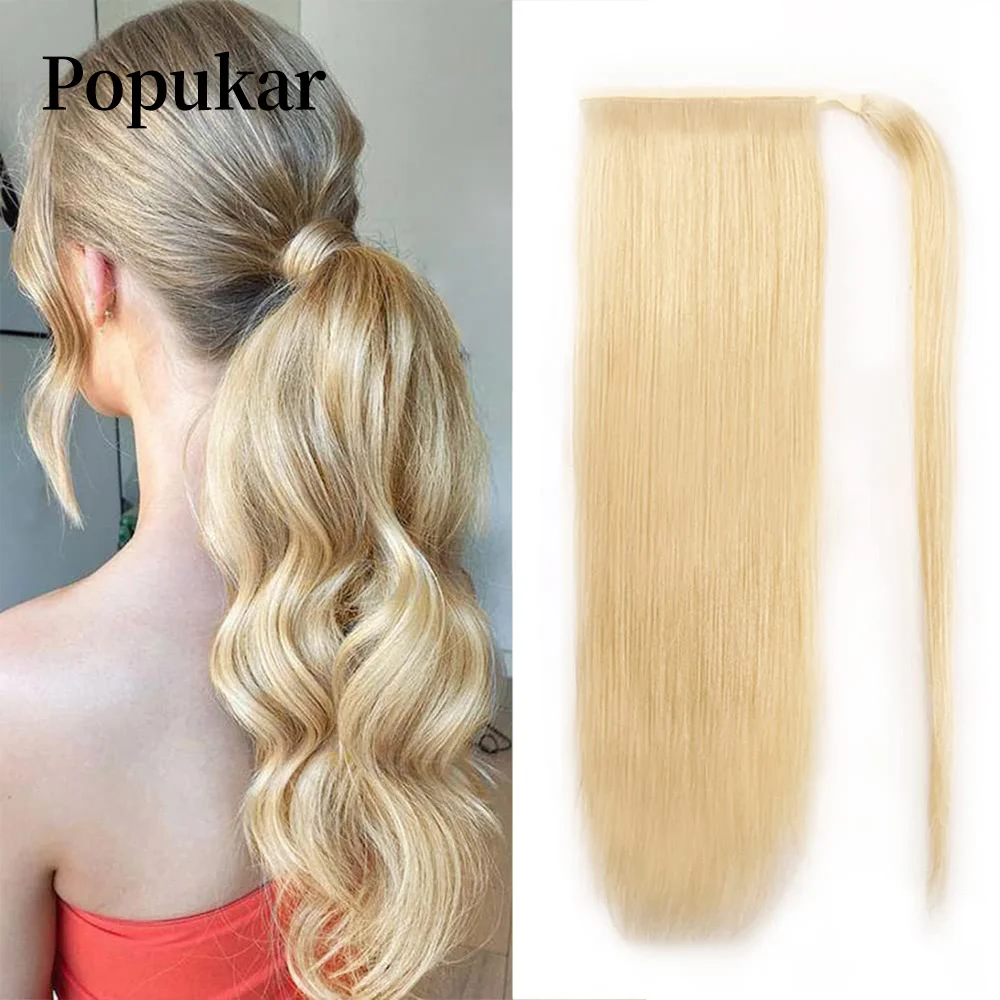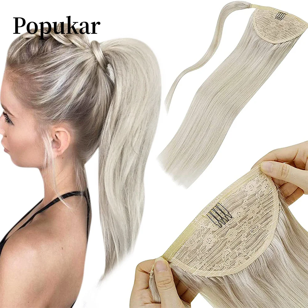 Прямые натуральные человеческие волосы, зажим для конского хвоста 613, наращивание конского хвоста Remy машинной работы для белых женщин, без когтей, Popukr