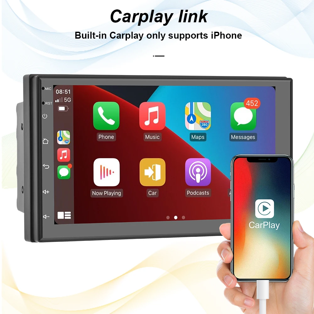 ● Беспроводной Carplay: вы можете выбрать проводное соединение или Беспроводной подключение к carplay, подключаться к Apple мобильный телефон, мобильный телефон адресная книга, электронная почта, уведомления, map навигация, прослушивания музыки, просмотра видео и другую информацию, И реализовать Голосовое управление.