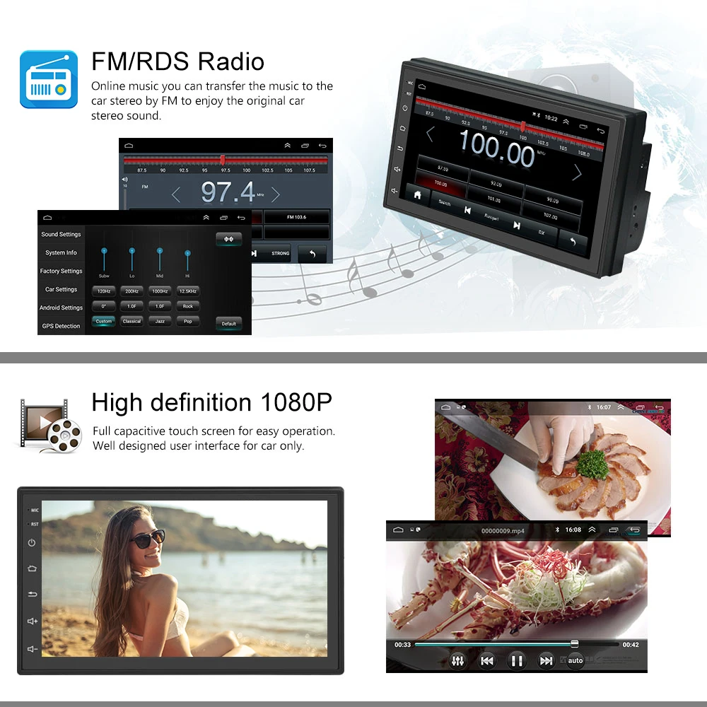 ● FM /AM/RDS радио: онлайн-музыка вы можете передавать музыку на автомобильную стереосистему FM, чтобы наслаждаться оригинальным стереозвуком автомобиля, с 30 предустановленными станциями