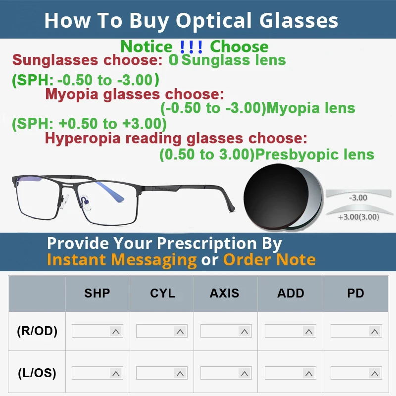 Myopia Glasses Choose-0.50 to -3.00 myopia lens