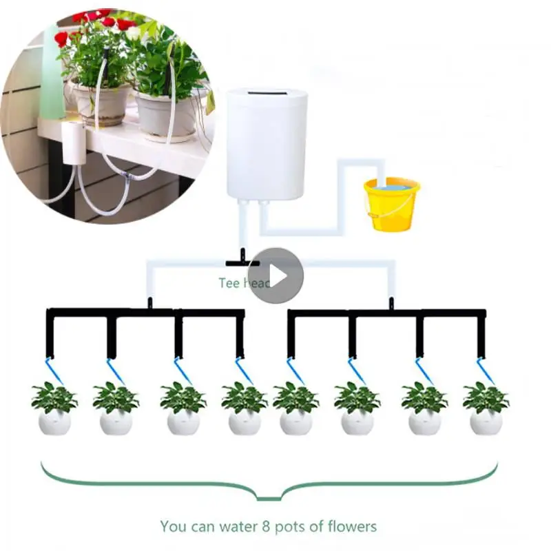 Контроллер * 1, капельная головка * 4, пятиходовая головка * 1, крючок * 1, тонкий водопроводный (черный) * 3 м, доступ трубы (прозрачный) * 1,5 м
