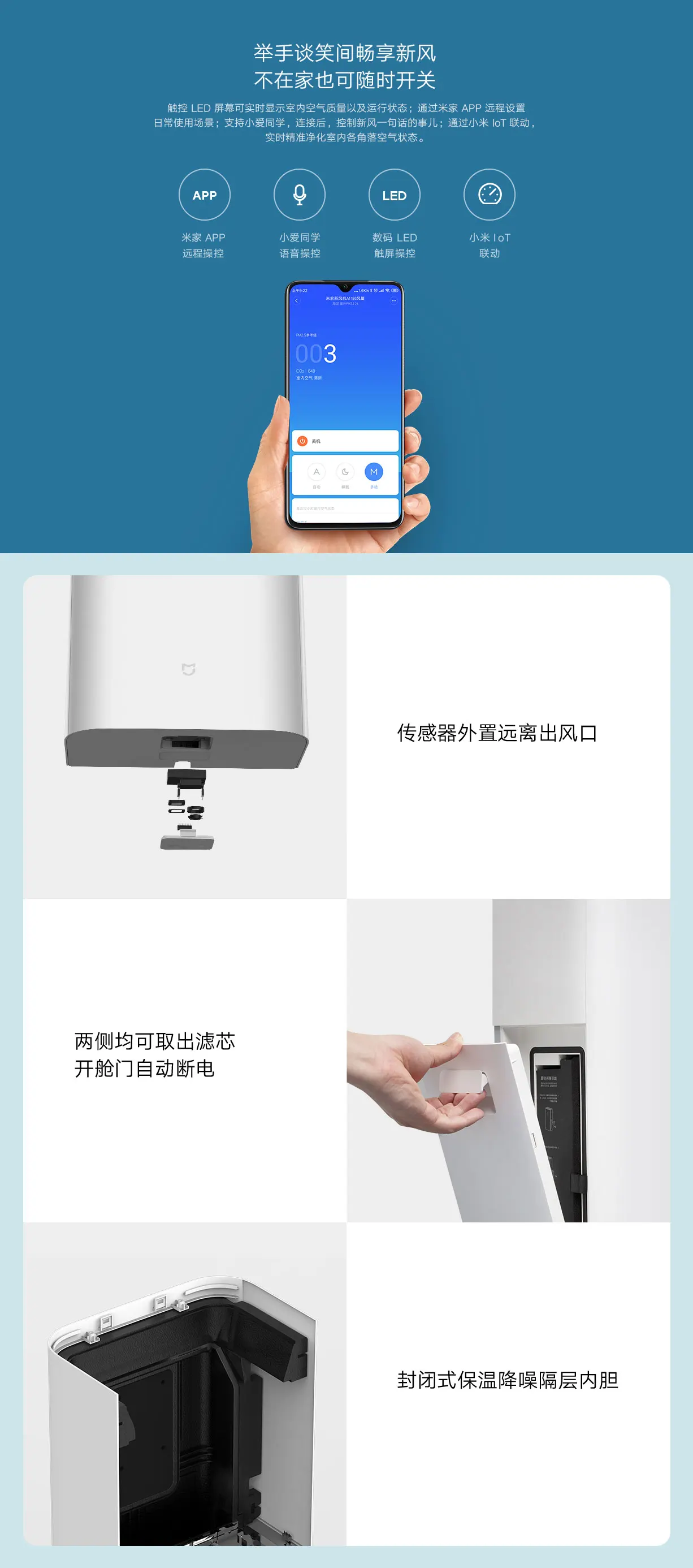 -Конструкционные детали с покрытием EPP высокой плотности анти-сейсмические и устраняющие шум; Прямой воздушный путь имеет мягкую вентиляцию; Бесщеточный двигатель постоянного тока работает плавно и с небольшим шумом; заменяет вентиляцию окна, чтобы уменьшить воздействие уличного шума.