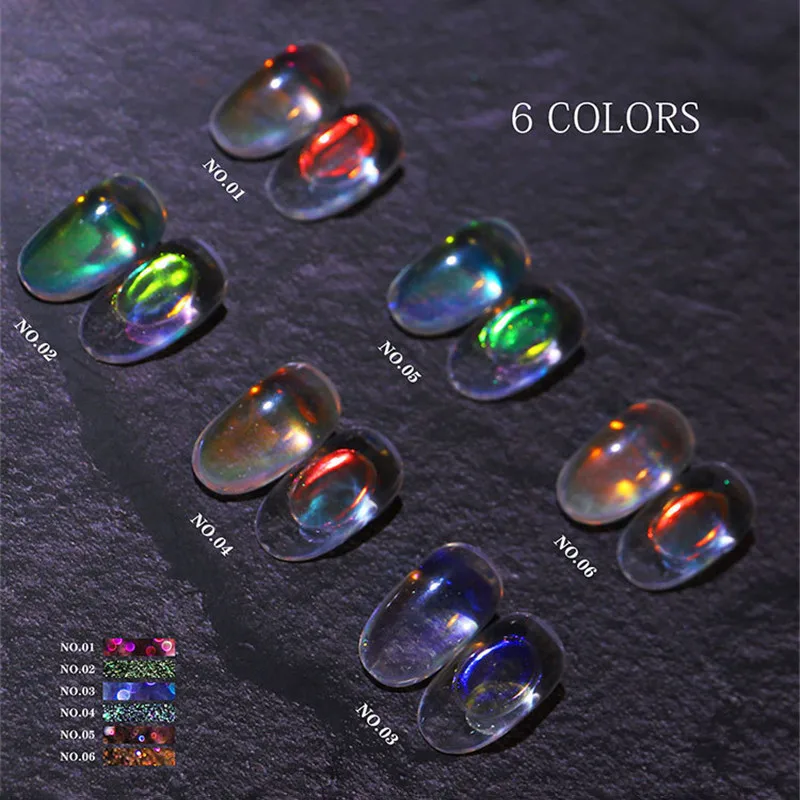 1 Набор, сияющая пудра для ногтей Aurora, разноцветные Блестки для ...
