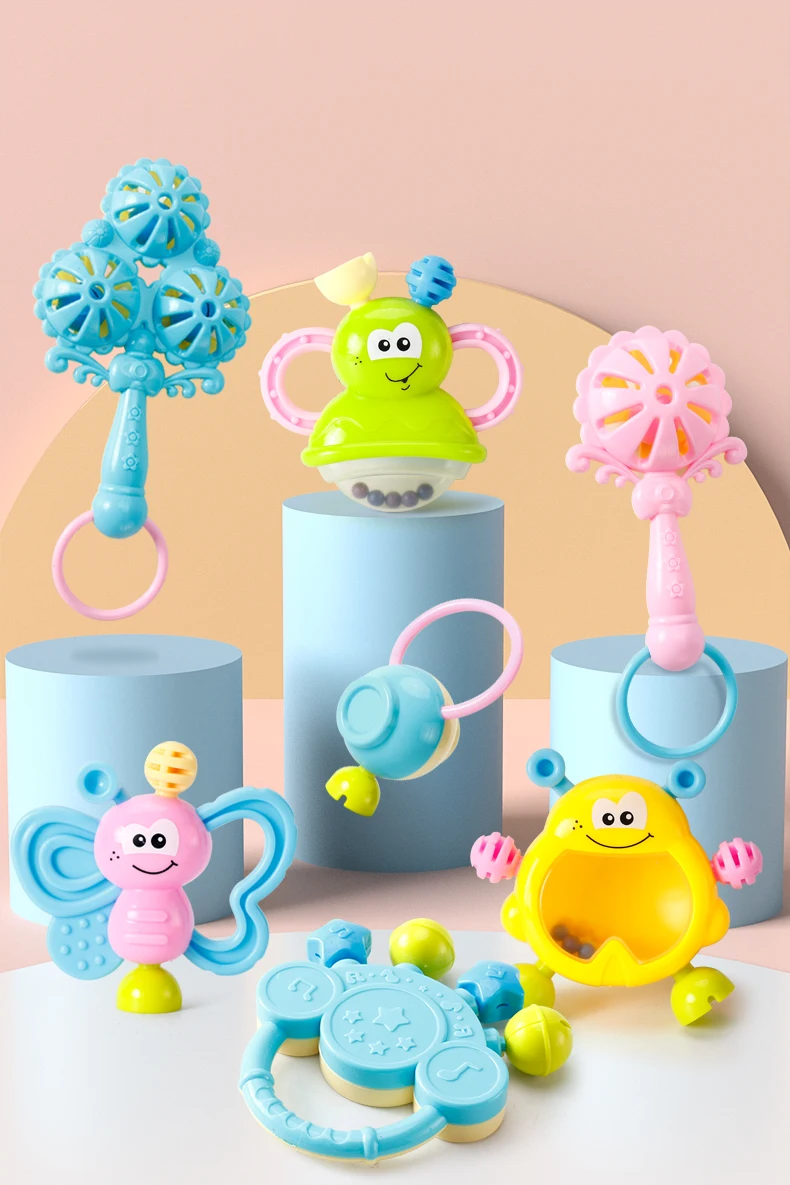 7 шт.лот детские игрушки-погремушки для новорожденных детей Колокольчик для рук детские развивающие игры из АБС детские игрушки 0-12 месяцев