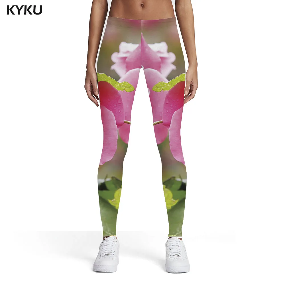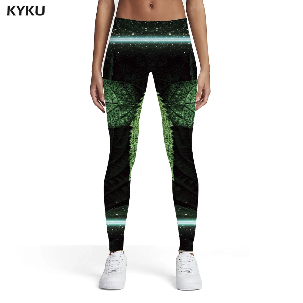 Женские летние облегающие брюки KYKU, зеленые женские брюки с принтом в виде листьев из спандекса в стиле Харадзюку