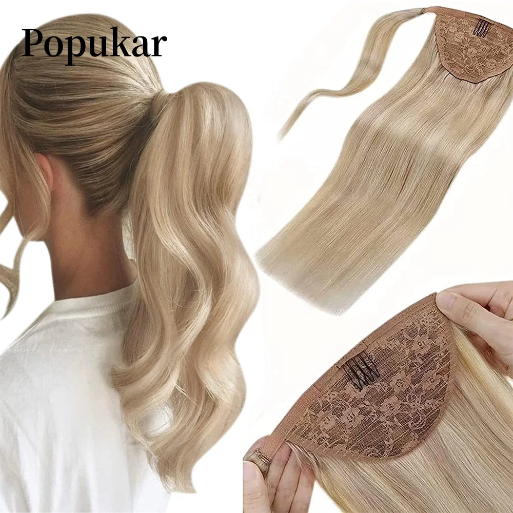Прямые натуральные человеческие волосы для наращивания конский хвост на зажиме машинное наращивание Реми конский хвост для белых женщин popakku