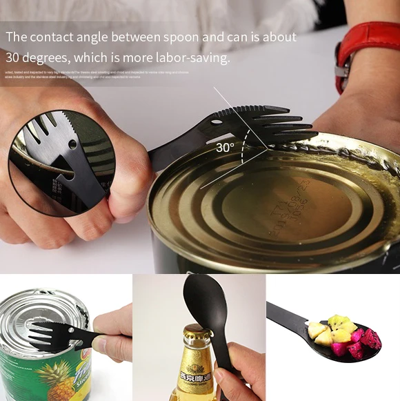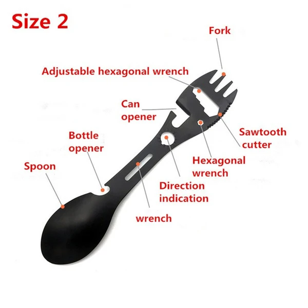Многофункциональный, 5-в-1/9-in-1, как ложка, вилка, открывалка для бутылок, шестигранный ключ, дюймовый стандарт, консервный нож и пилообразный резак и т. Д. Отлично подходит для путешествий на открытом воздухе. Отличные маленькие подарки для друзей и родственников.