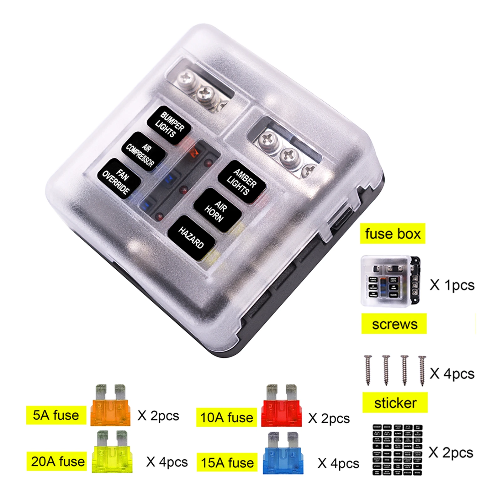 [4] продукт имеет красный светодиодный индикатор, который соответствует электроприборам, подключенным к каждой полосе предохранителя. Когда предохранитель отключен, красный светильник будет включен. Вы можете сразу узнать, какой предохранитель сломан, и с ним удобно справиться вовремя.