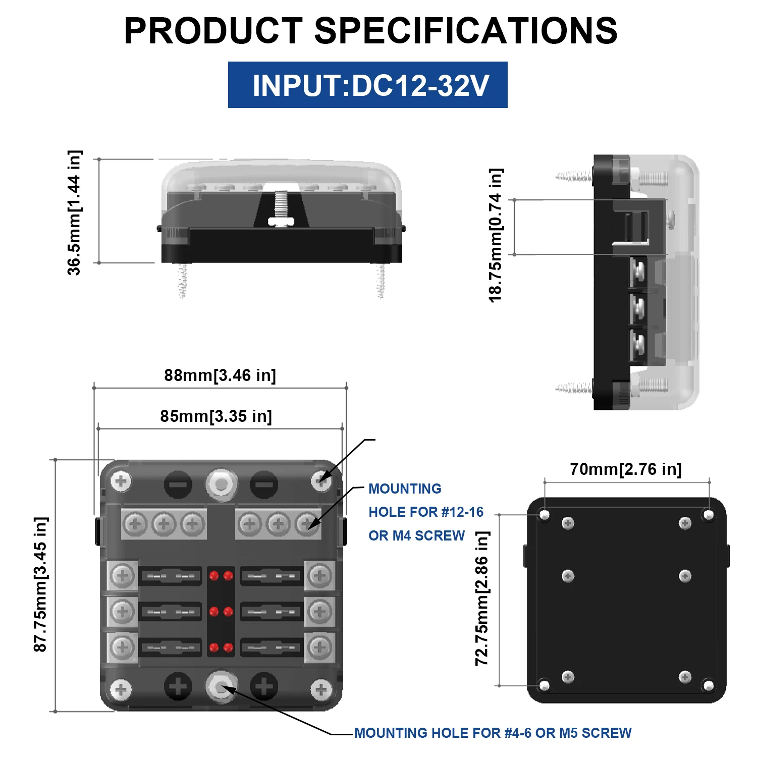 12 В 32 В M5 Шпилька с светодиодный светильник-индикатор 6 способов 12 способов лезвие блок предохранителей держатель предохранителя ПК водонепроницаемый пылезащитный чехол
