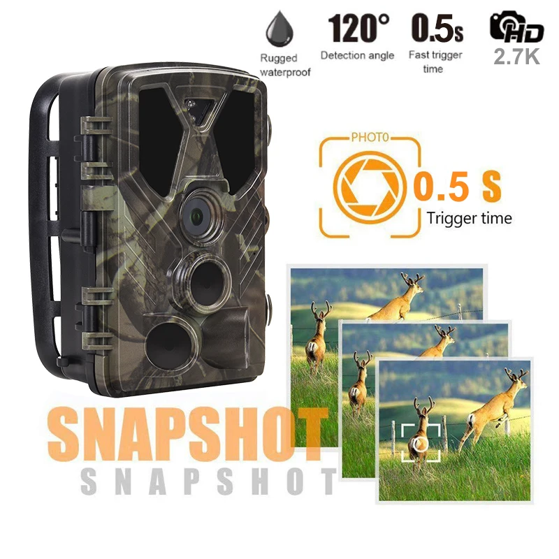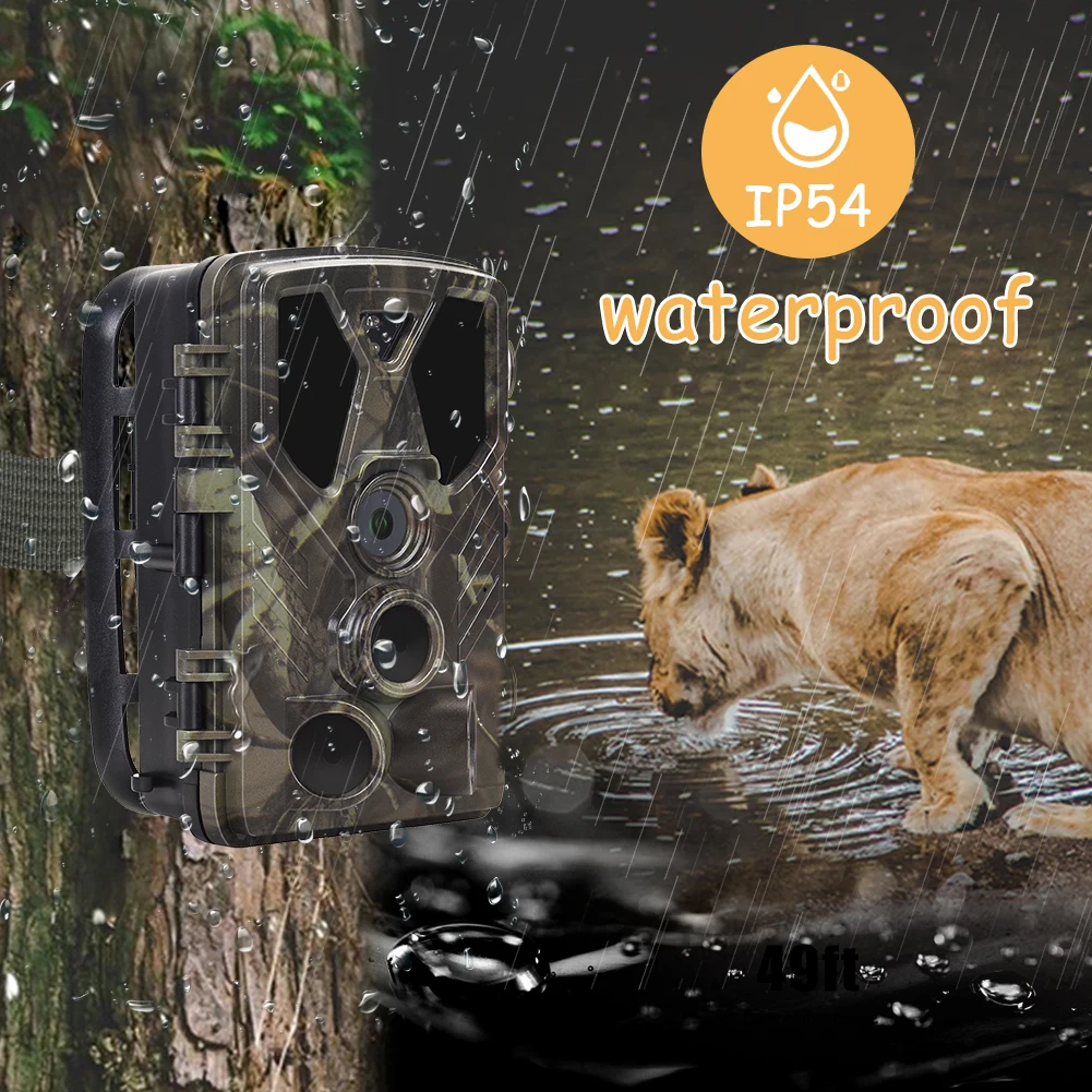 Водонепроницаемость: IP65Способ фиксации: ремень, крепление штативаНесколько фотографий на одном обнаружении: 1/3/6/9IP65 герметичный водонепроницаемый внешний вид, эффективно предотвращает попадание пыли и насекомых в дождевую воду.