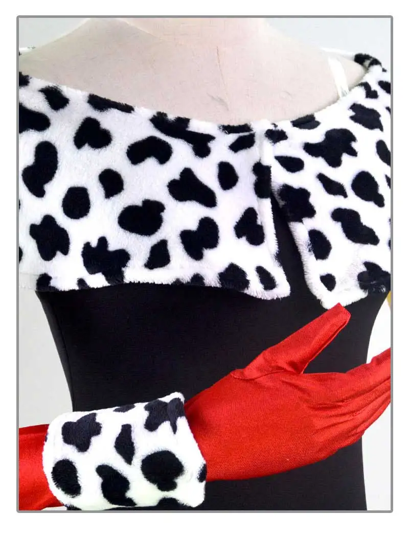 Женский костюм Cruella De Vil, платье злодея Cruella, перчатки, палантин, косплей, вечеринка, косплей, костюм на Хэллоуин