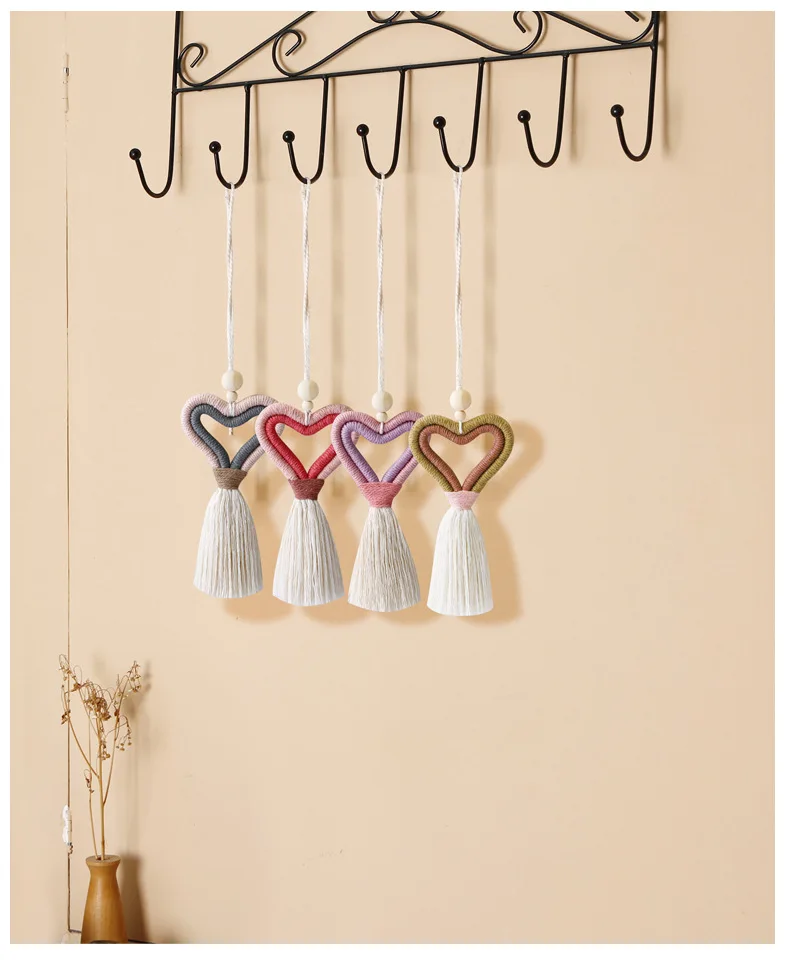 Веревка из хлопка макраме всех цветов радуги с кисточкой-сердцем подвесные украшения для автомобиля номер подарок для девочек