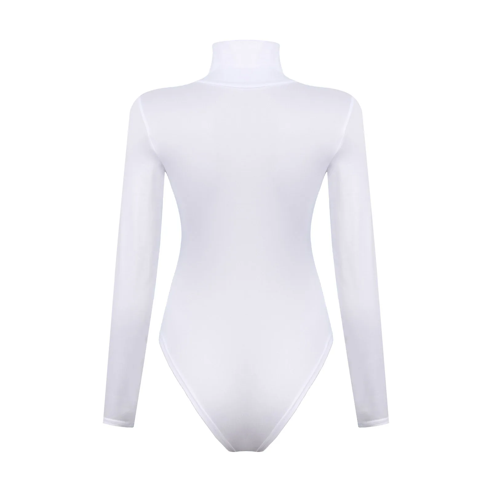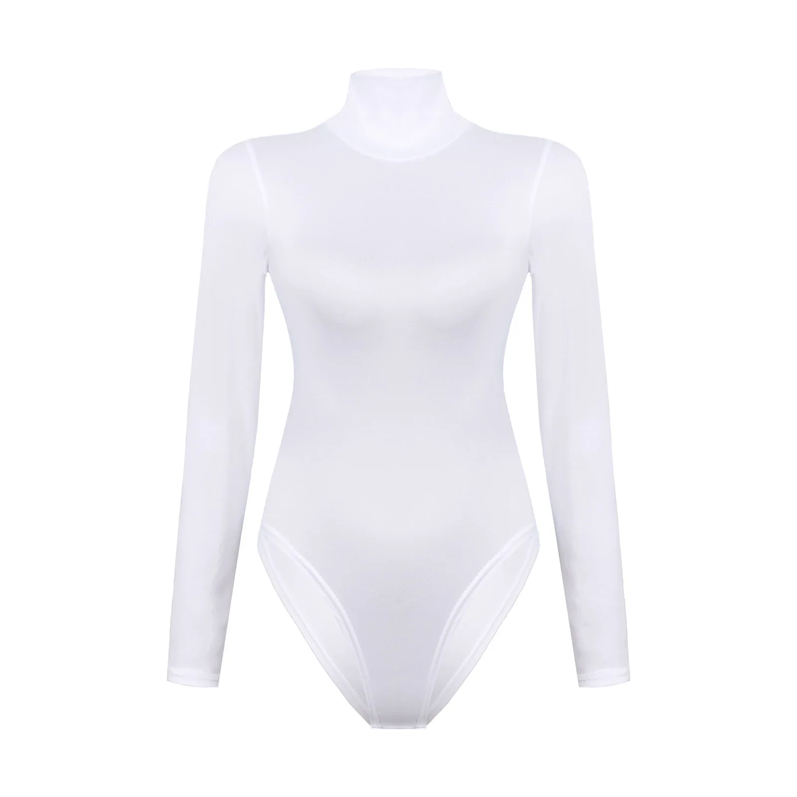Женский эластичный женский комбинезон для фитнеса, танцевальный костюм, боди с высоким воротником, топ с длинными рукавами, футболки для взрослых