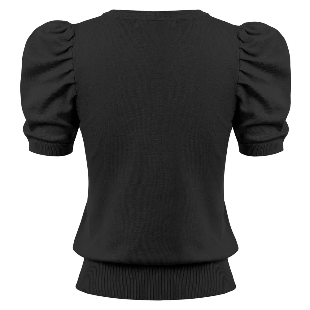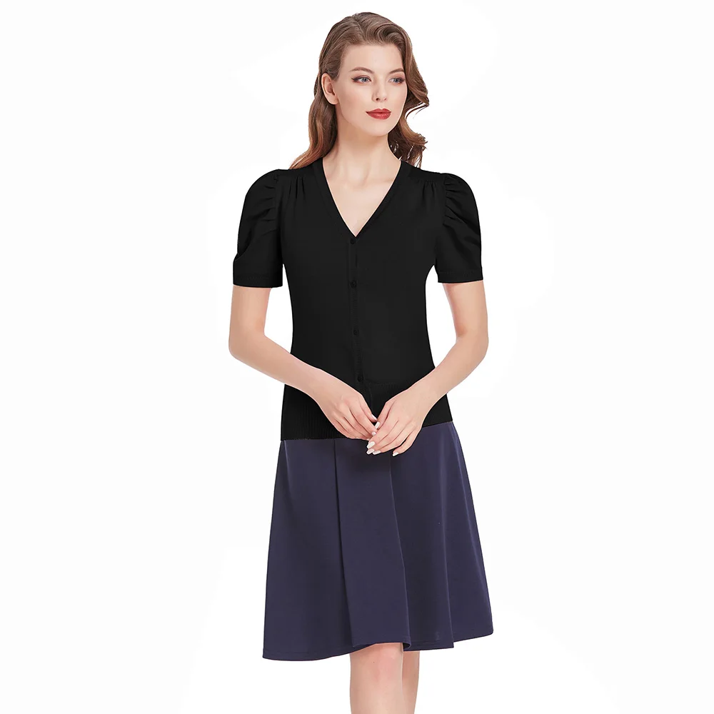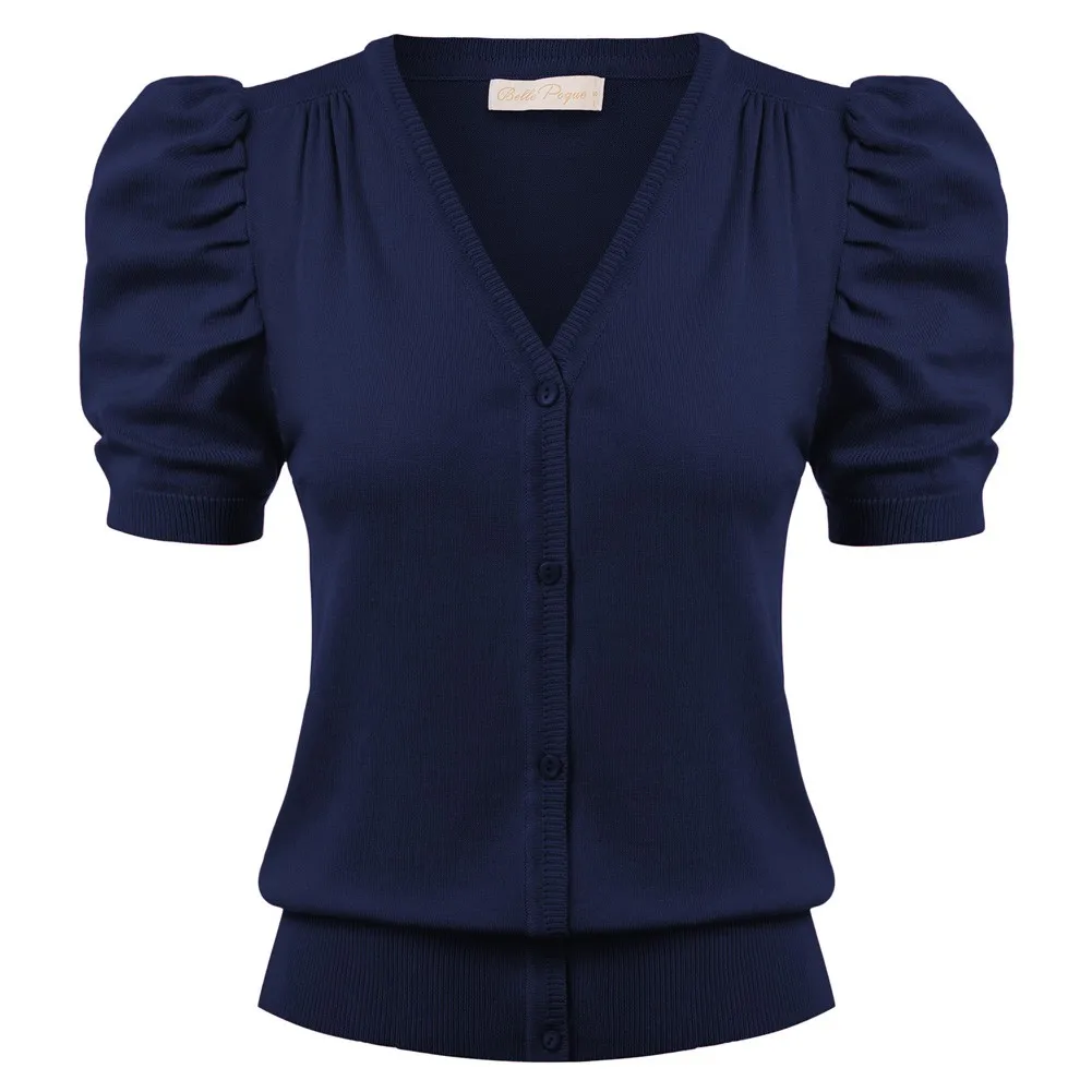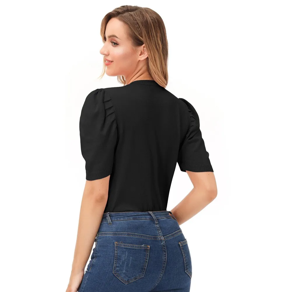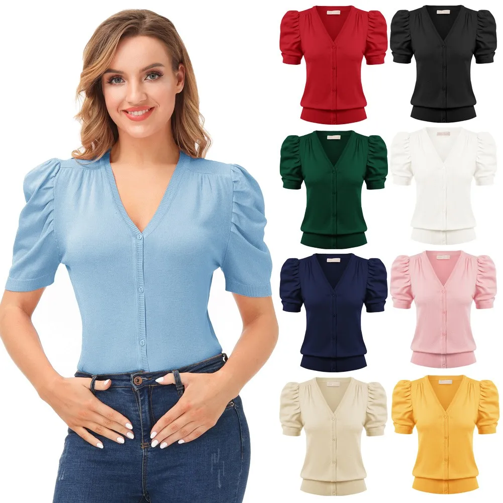 Женский трикотажный кардиган с коротким рукавом-фонариком и V-образным вырезом