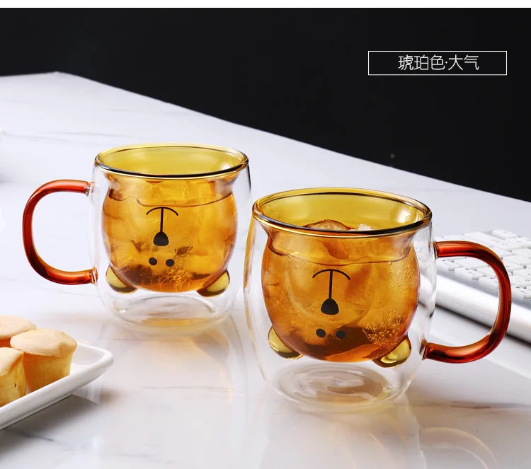 Креативные кофейные кружки с милым медведем, двойная стеклянная чашка с животным, двухслойная кружка для молока, сока, чая, чашка, женский подарок на день Святого Валентина и Рождество