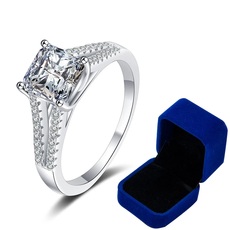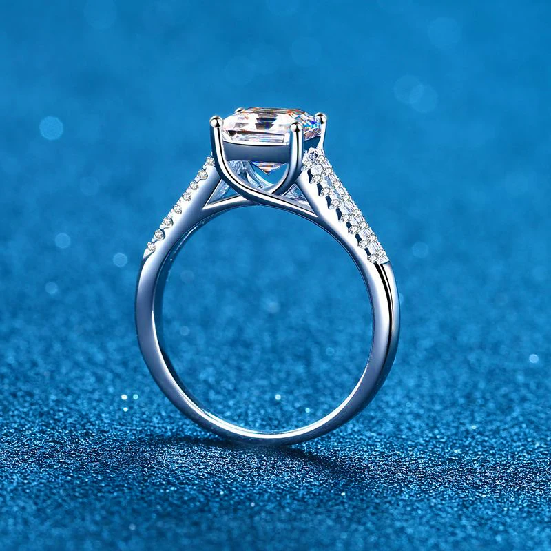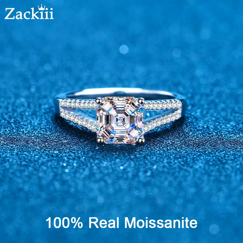 2CT обручальное кольцо Moissanite с родиевым покрытием из стерлингового серебра с алмазной огранкой, обручальное кольцо с бриллиантом