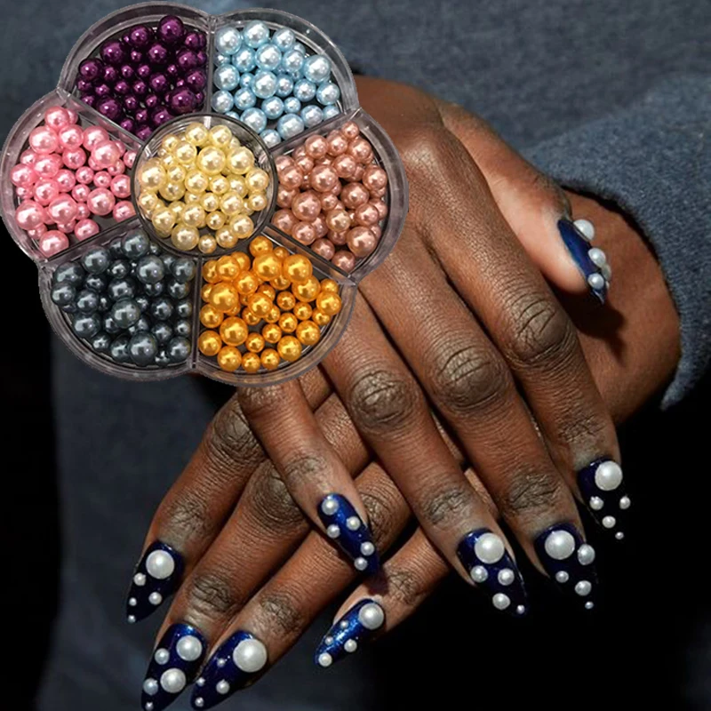 6 гирлянд в колесе, 3D декор для ногтей, милый мультяшный медведь Boknot, собака, круглый жемчуг, 21 шт. Стразы для ногтей для женских 1